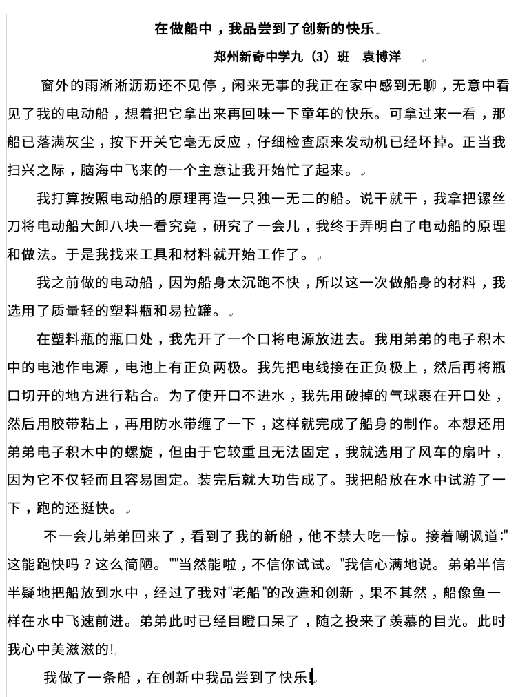 在做船中,我品尝到了创新的快乐
