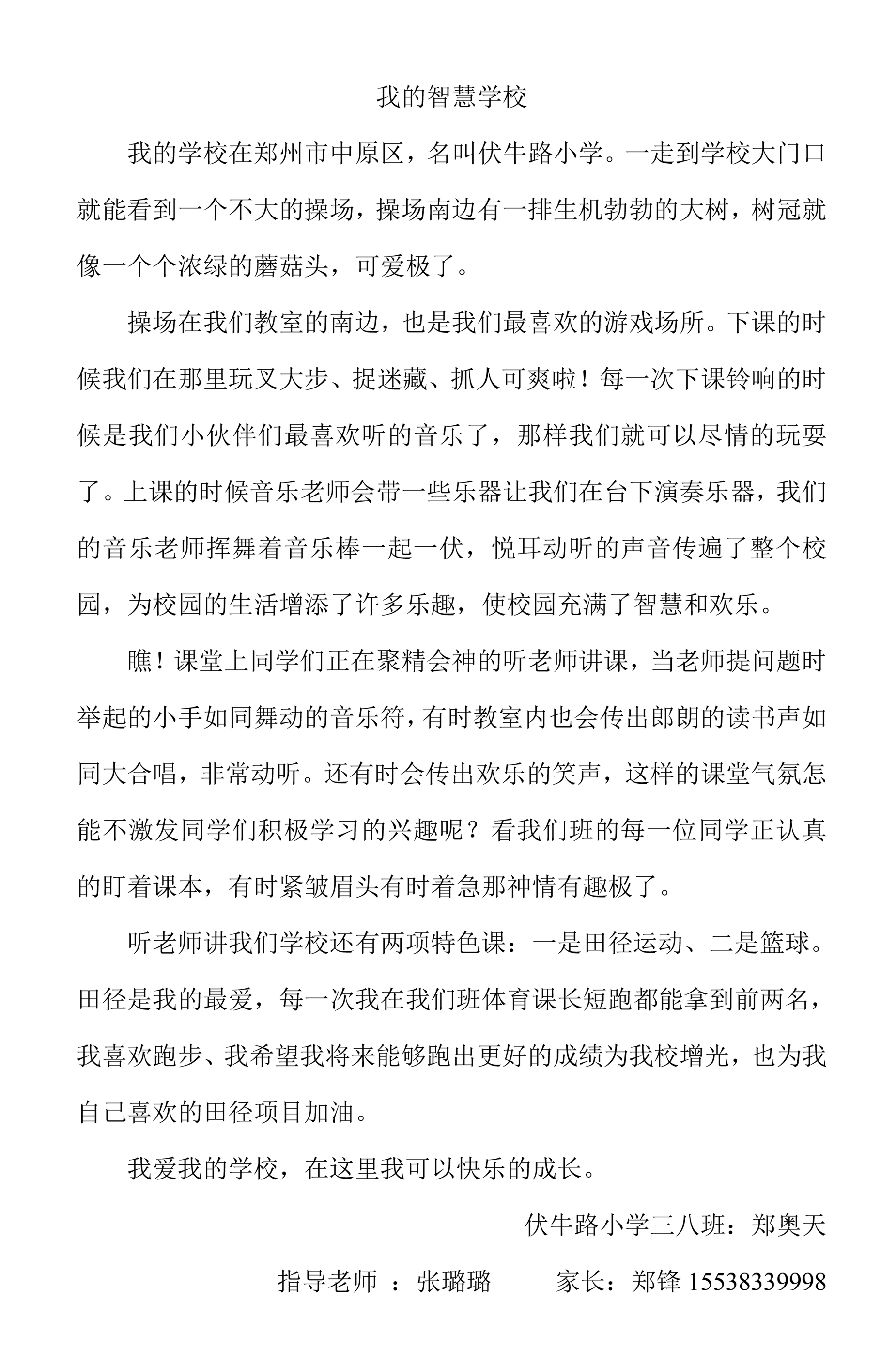 指导老师:张璐璐 所属学校:郑州市中原区伏牛路小学
