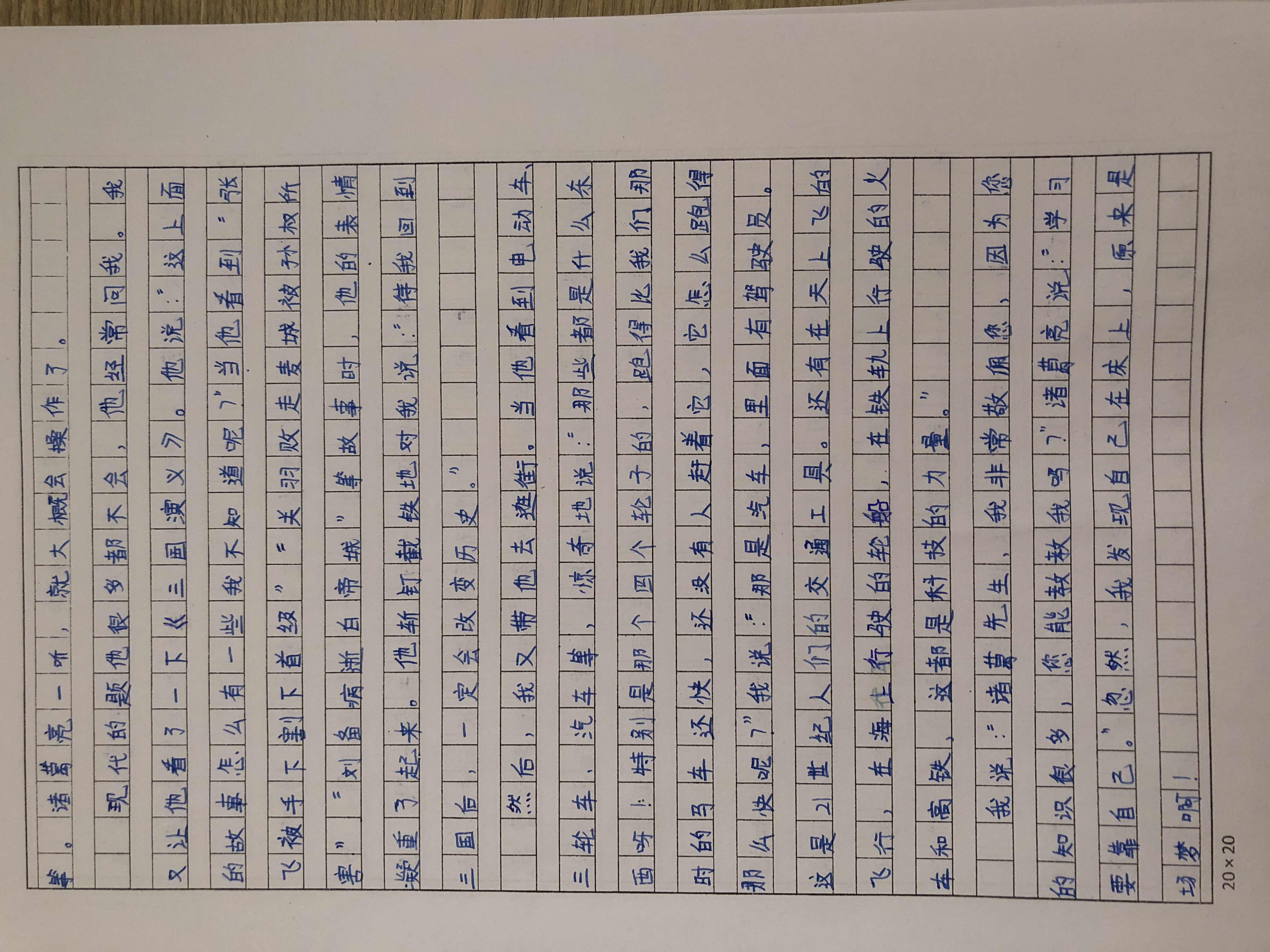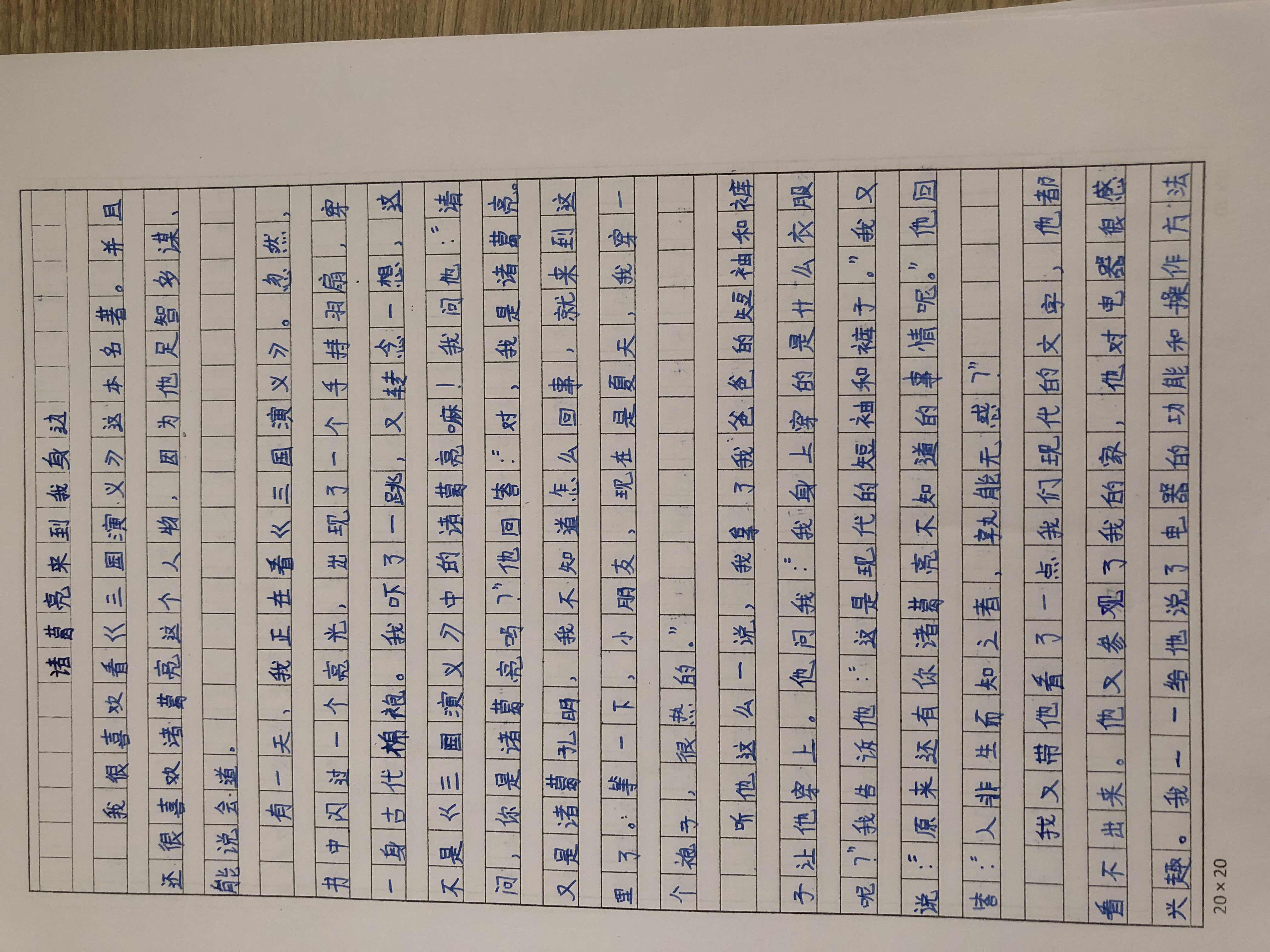 看得出来作者认真读了四大名著,并对诸葛亮十分敬佩,发挥了丰富的想象力,也带着他参观了现在的世界。语言流畅,思路清晰,想象力丰富。
