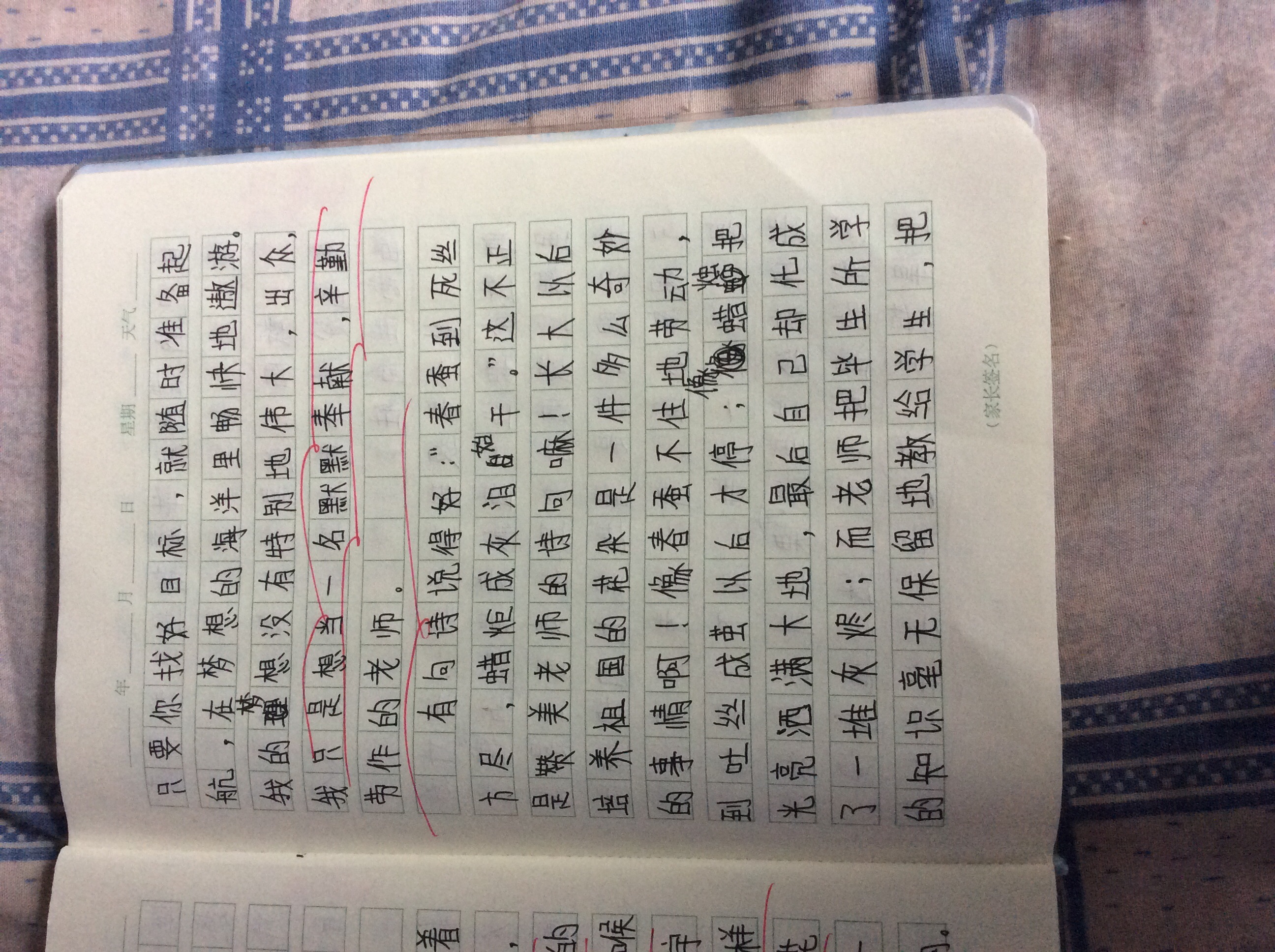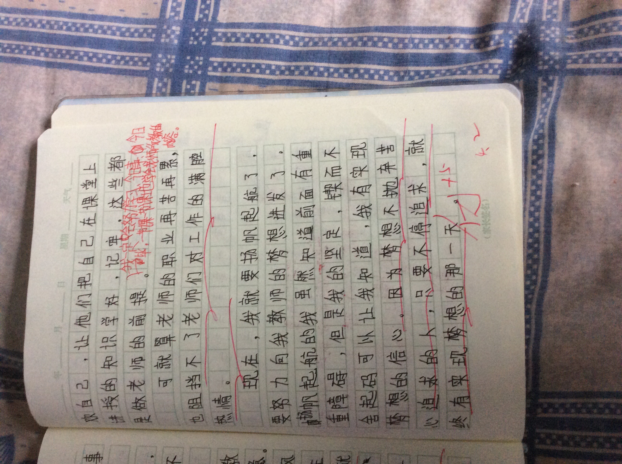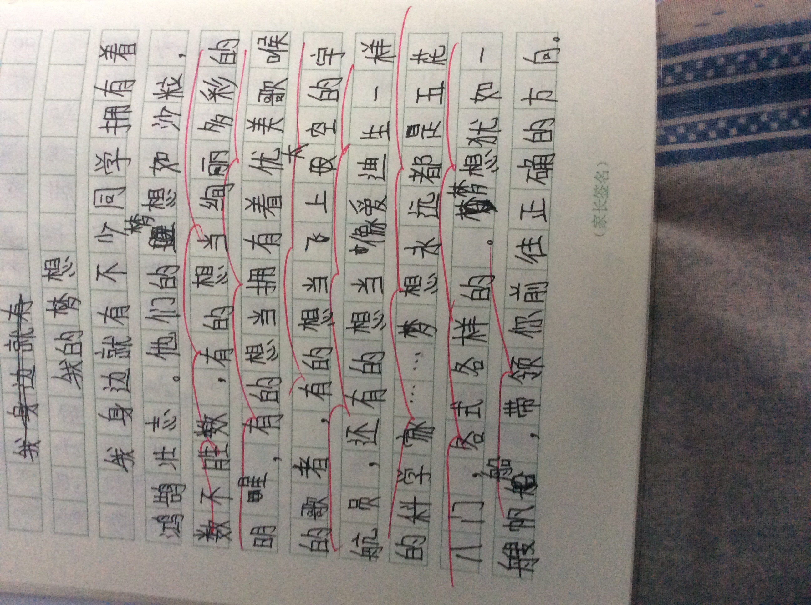 这是一篇描写我的理想的文章,通过读你的文章老师知道,你是一个有理想、有目标的孩子。写出了理想的重要。全文语言流畅自然,较为生动,是一篇不错的习作。