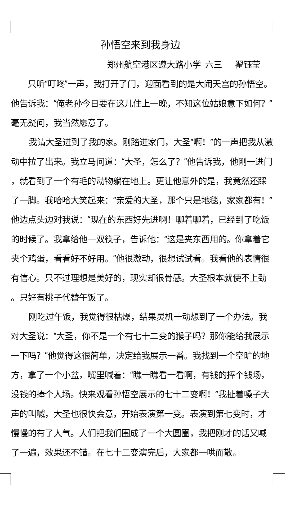 指导老师:高金辉 所属学校:郑州航空港区遵大路小学
