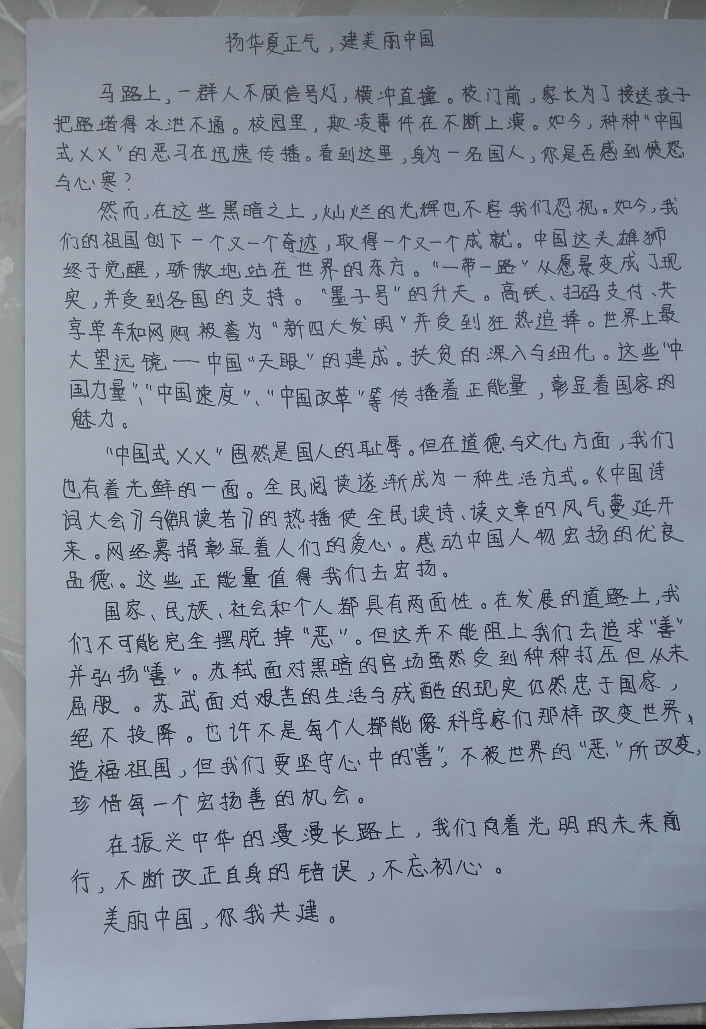 扬华夏正气,建美丽中国