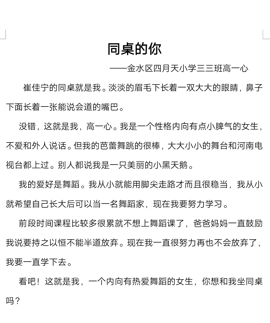 指导老师:我爸爸 所属学校:金水区四月天小学