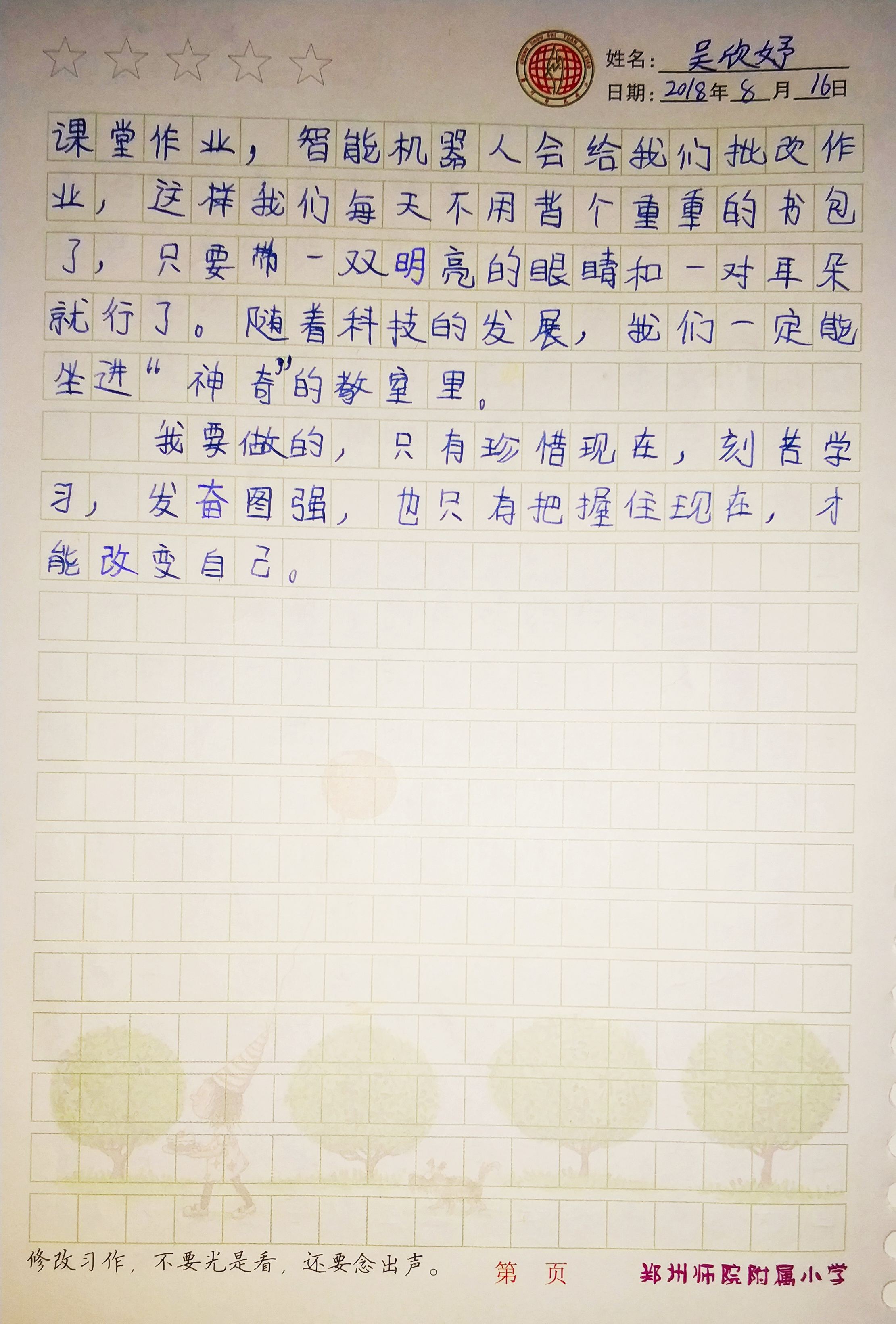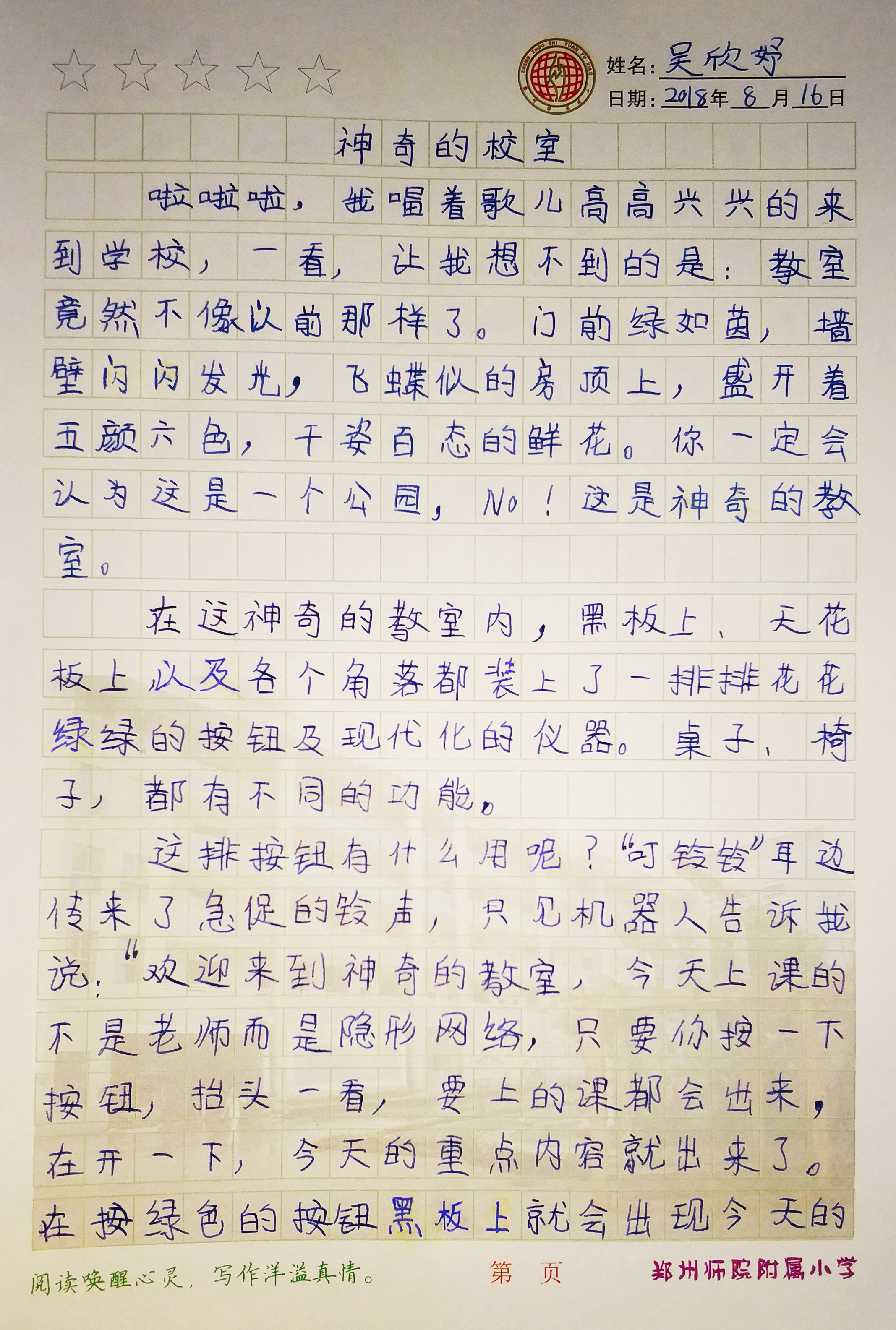 指导老师:胡小允 所属学校:郑州师范学院附属小学
