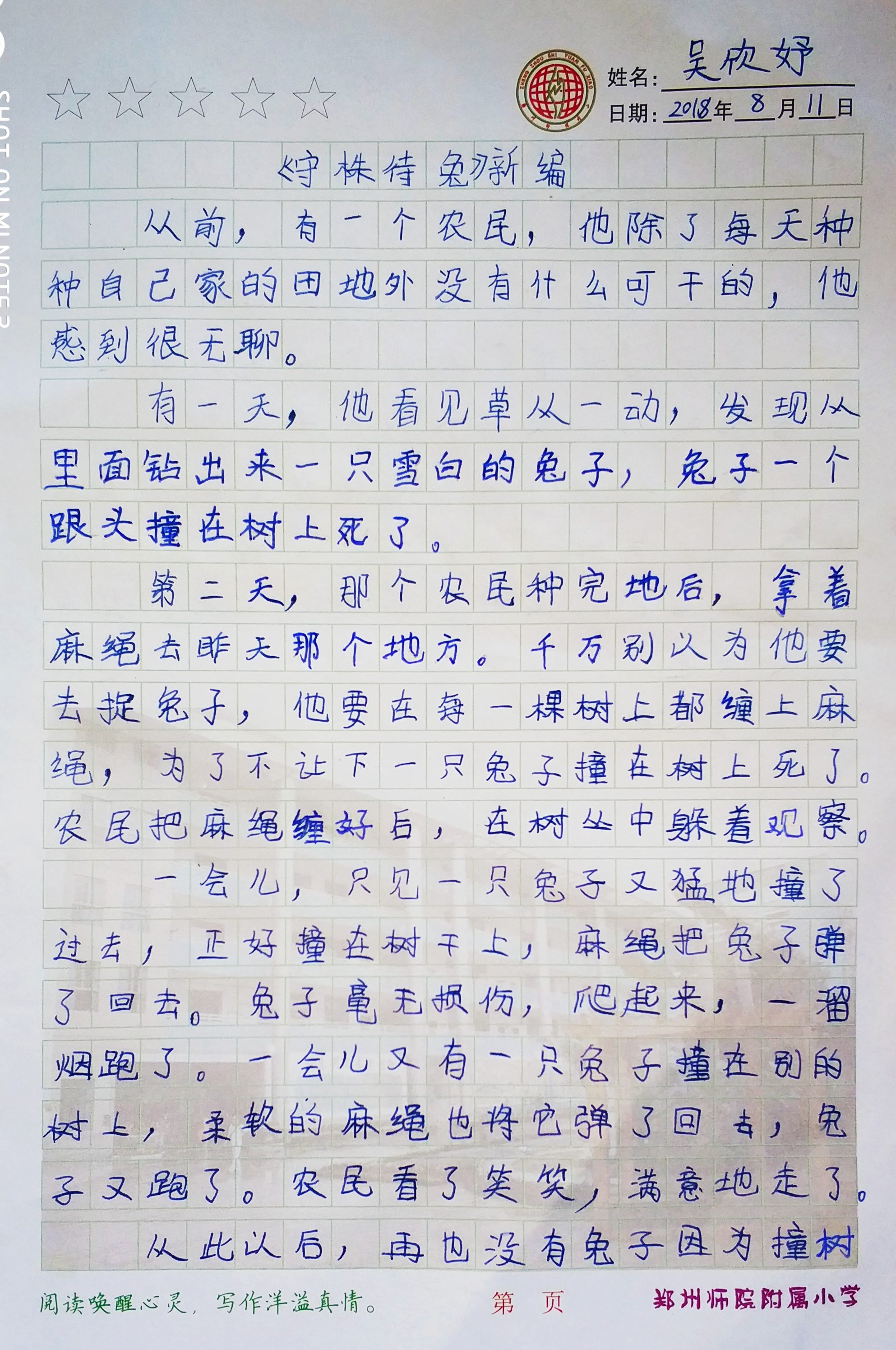 指导老师:胡小允 所属学校:郑州师范学院附属小学