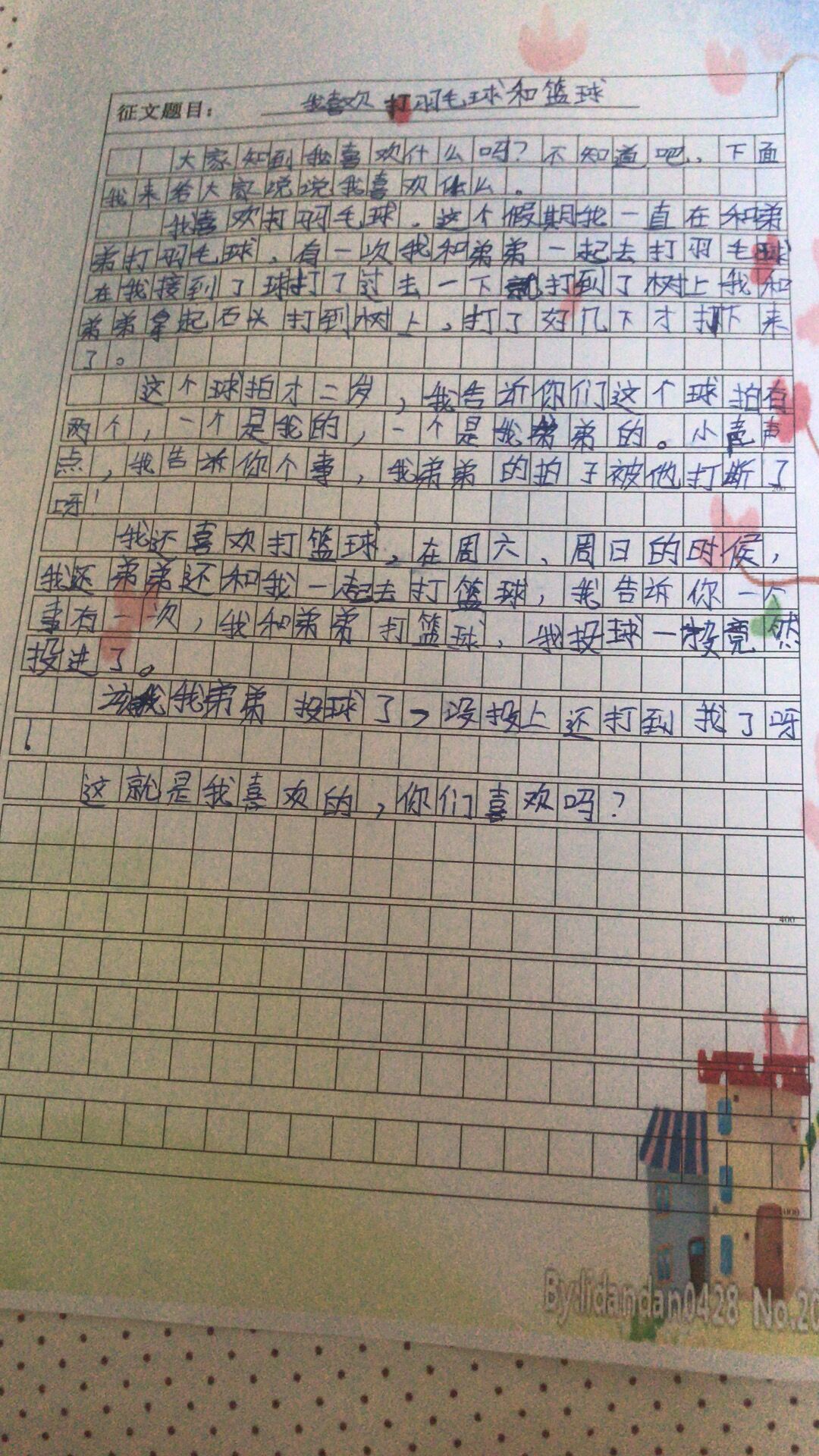 我喜欢打羽毛球
