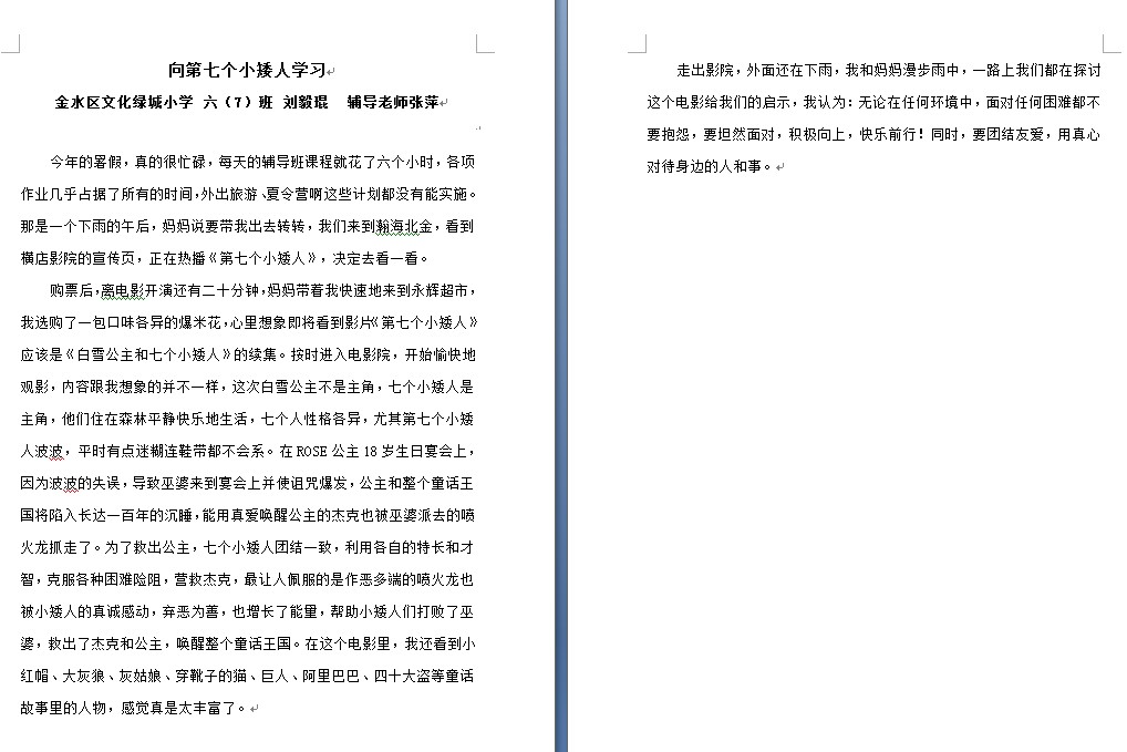 指导老师:张萍 所属学校:金水区文化绿城小学