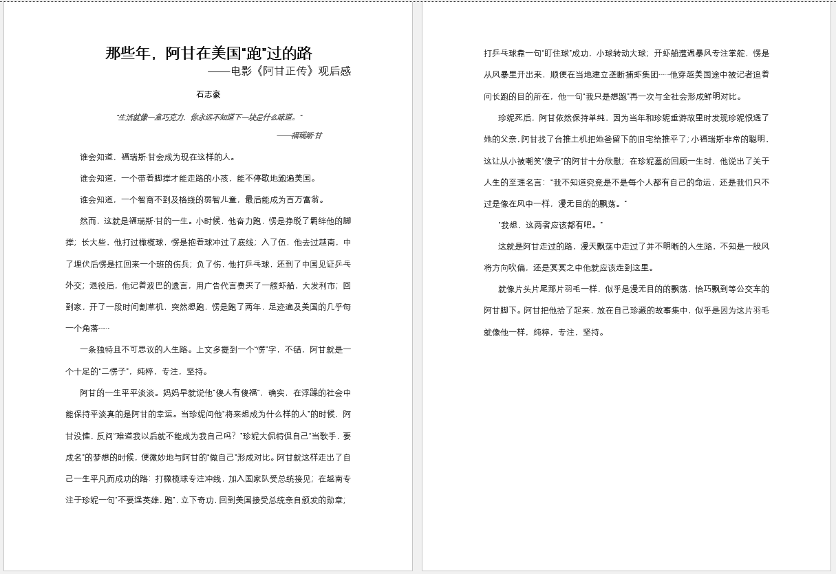 那些年,阿甘在美国“跑”过的路 ——电影《阿甘正传》观后感