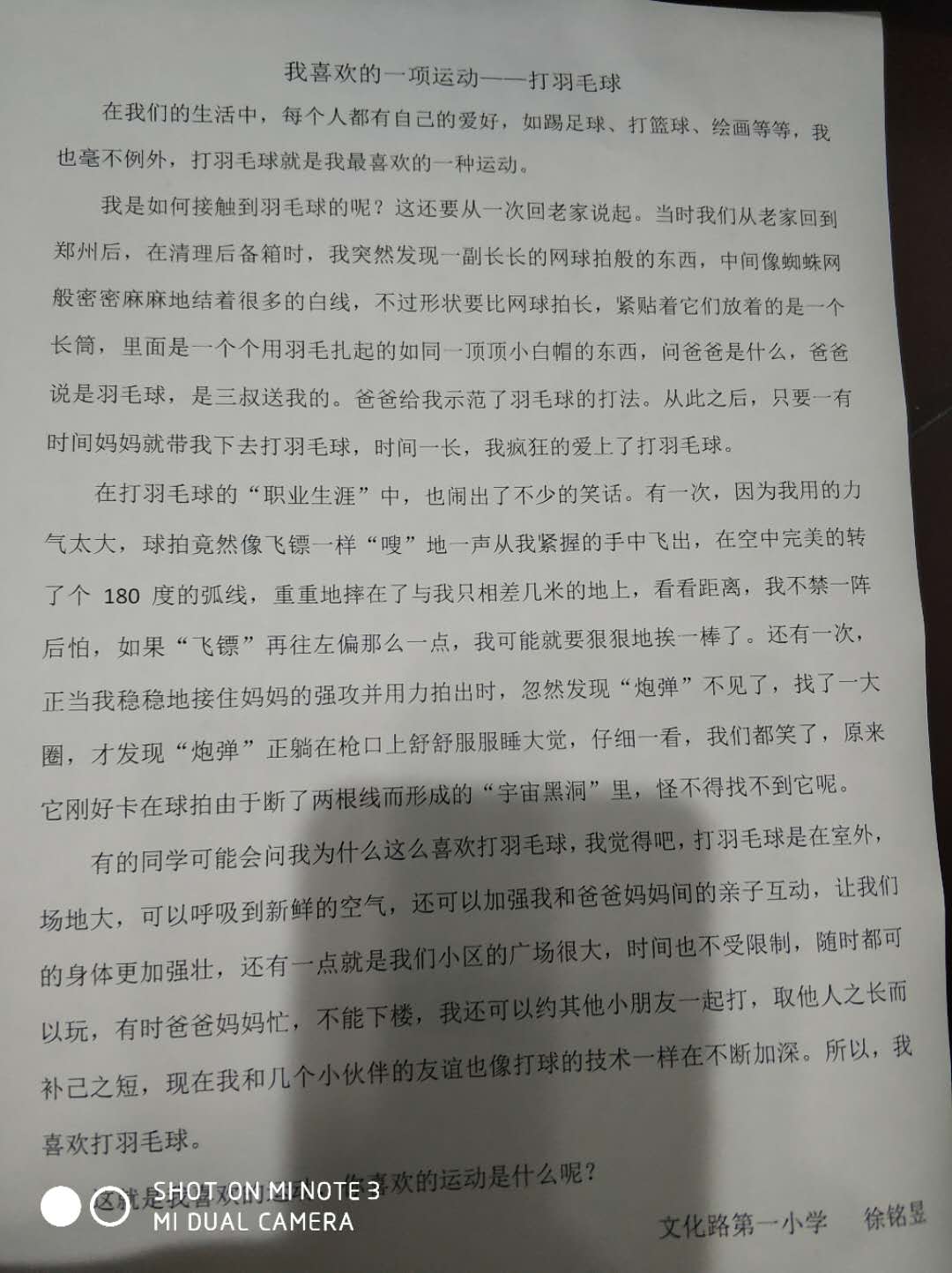 我喜欢的一项运动——打羽毛球