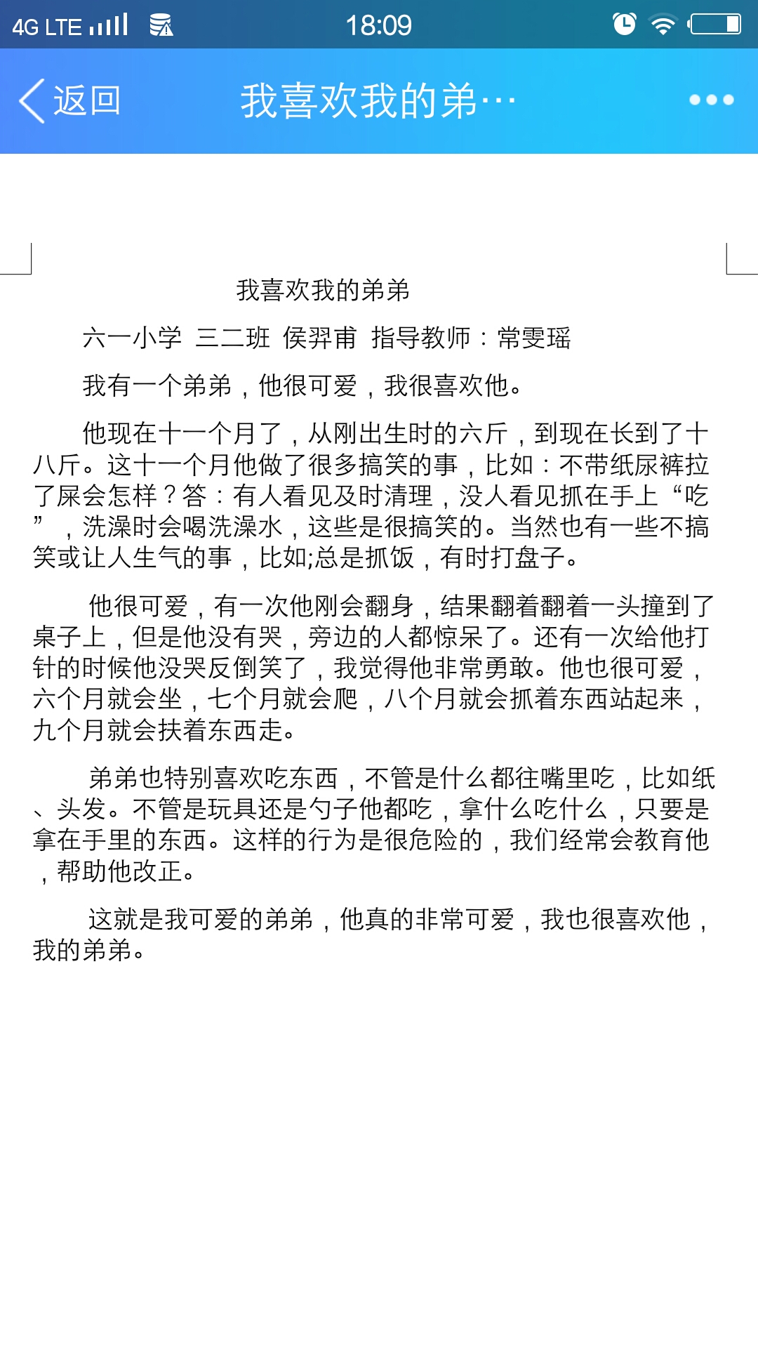 指导老师:常雯瑶 所属学校:经济技术开发区六一小学