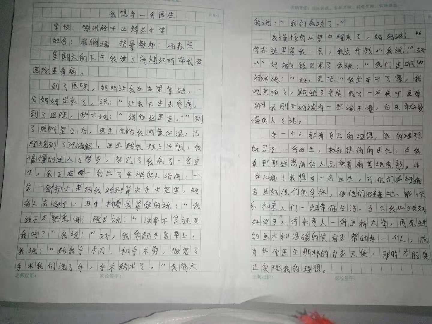 | 通过自己生病,梦见自己当了医生这样的一个小故事,来说明自己的梦想是当一名救死扶伤的医生。最后还说要想实现这个梦,就必须好好学习。真是太棒了,一环扣一环,紧紧相扣。表达的意思特别完整。 |