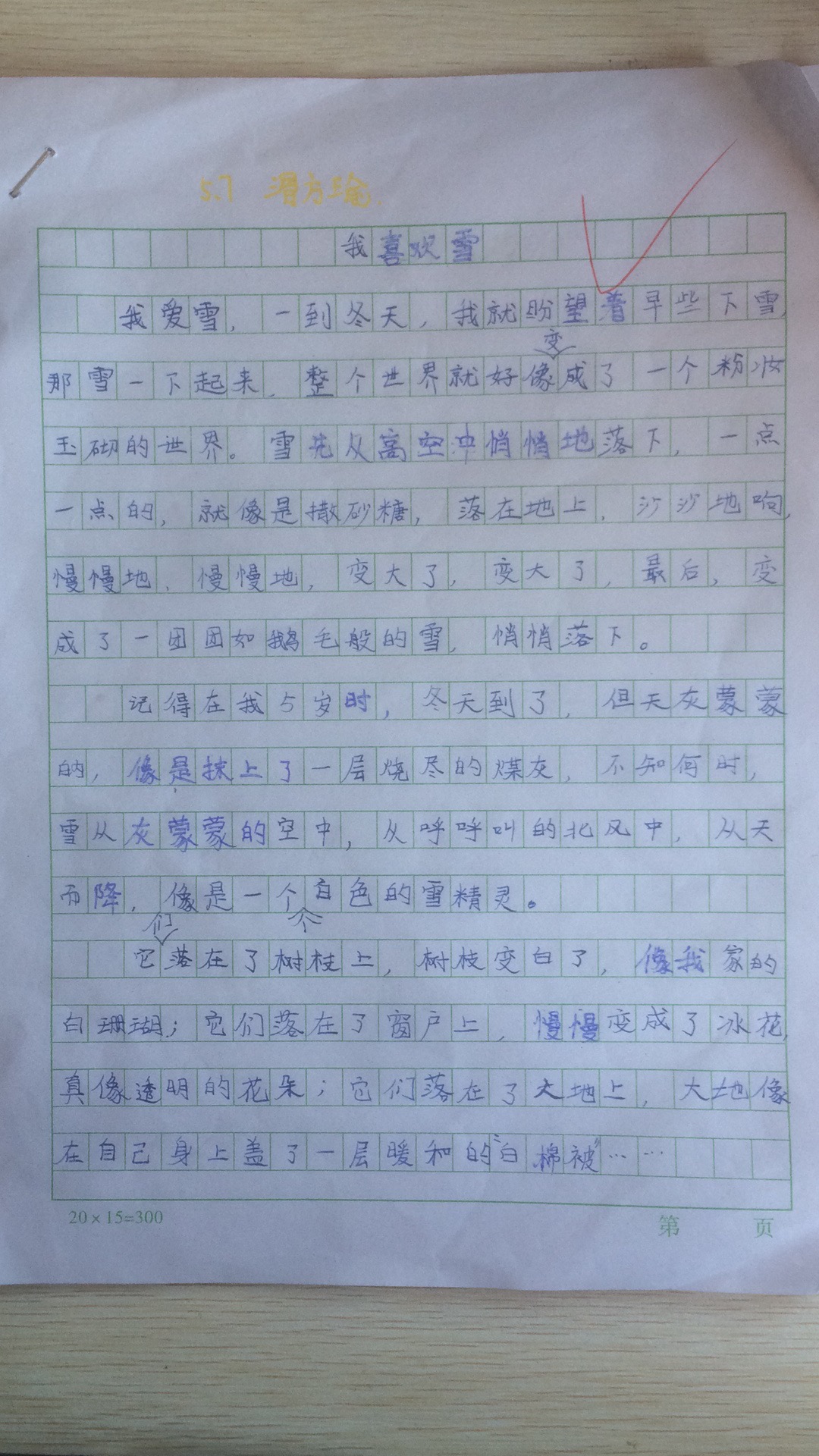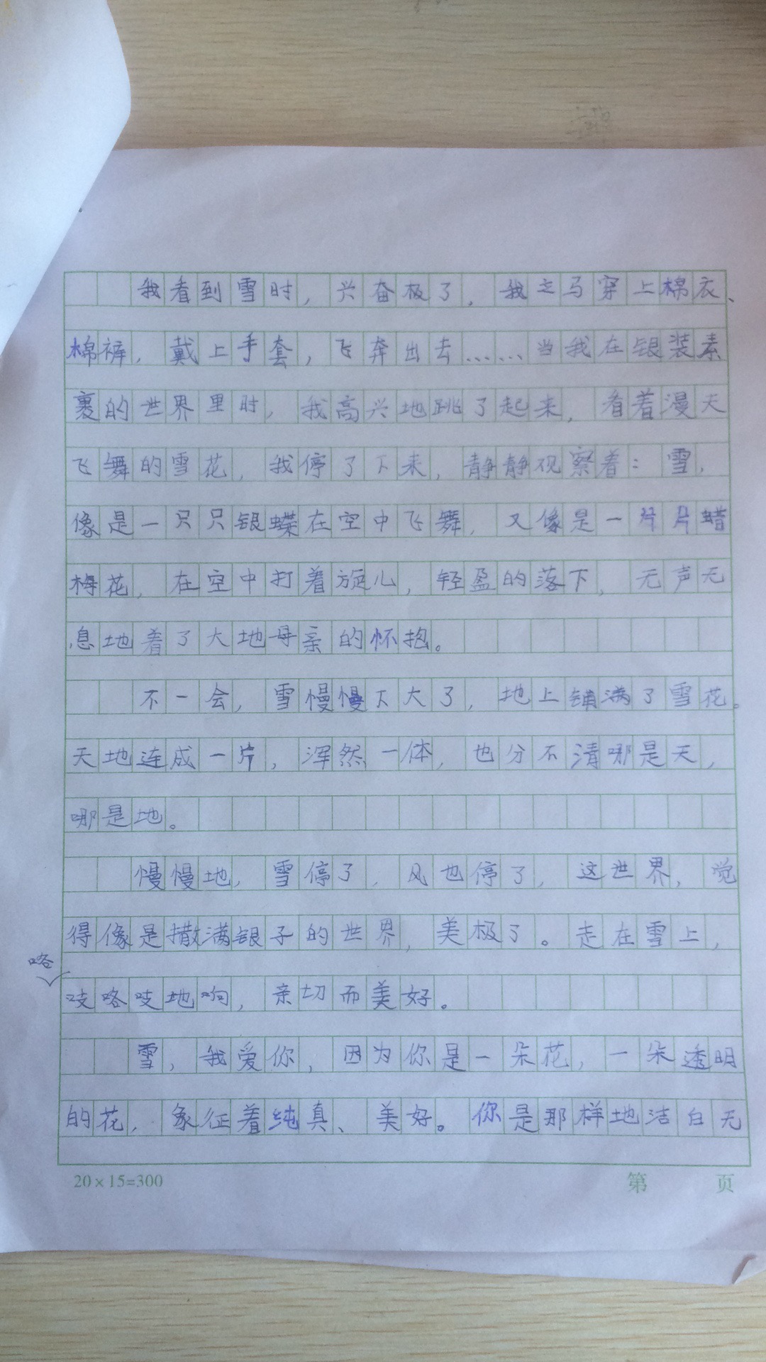 小作者妙笔生花,文采斐然。”雪先从高空中悄悄地落下,一点一点的,就像是撒砂糖,落在地上,沙沙地响“,”天灰蒙蒙的,像是抹上了一层烧尽的煤灰“,读你的文章是种享受。文章尽述了你对雪的喜爱,行云流水,一气呵成。你可以在冬天去东北看看,感受一下”千里冰封,万里雪飘“的北国世界。