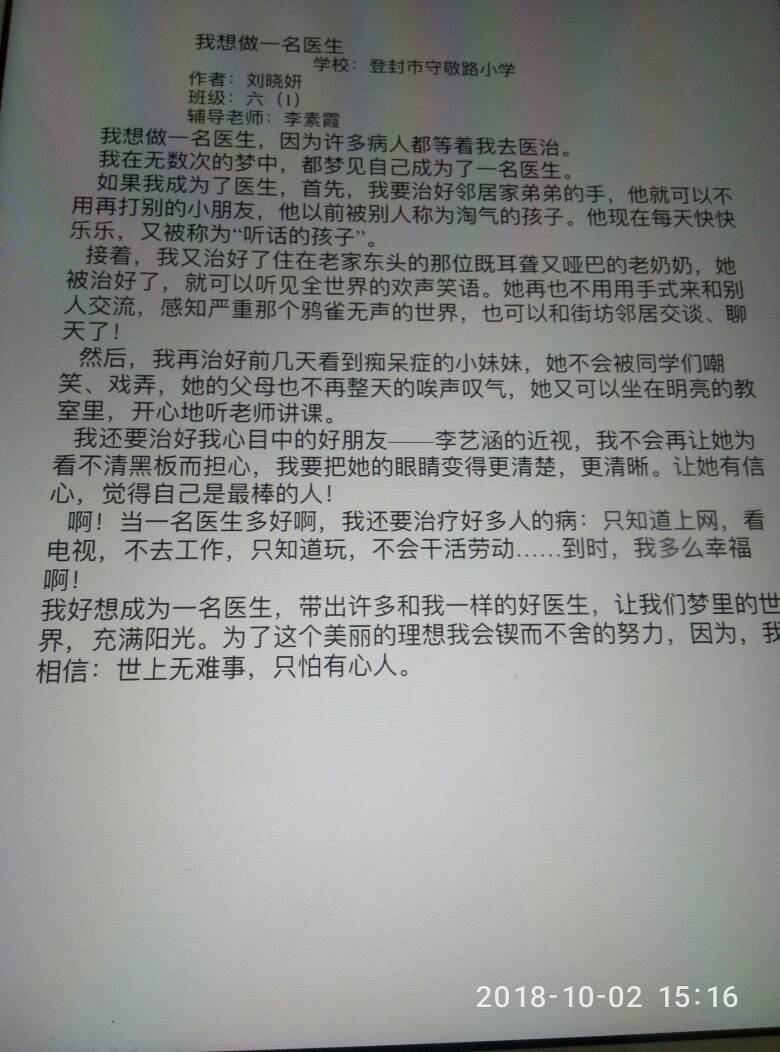 指导老师:李素霞 所属学校:登封市守敬路小学