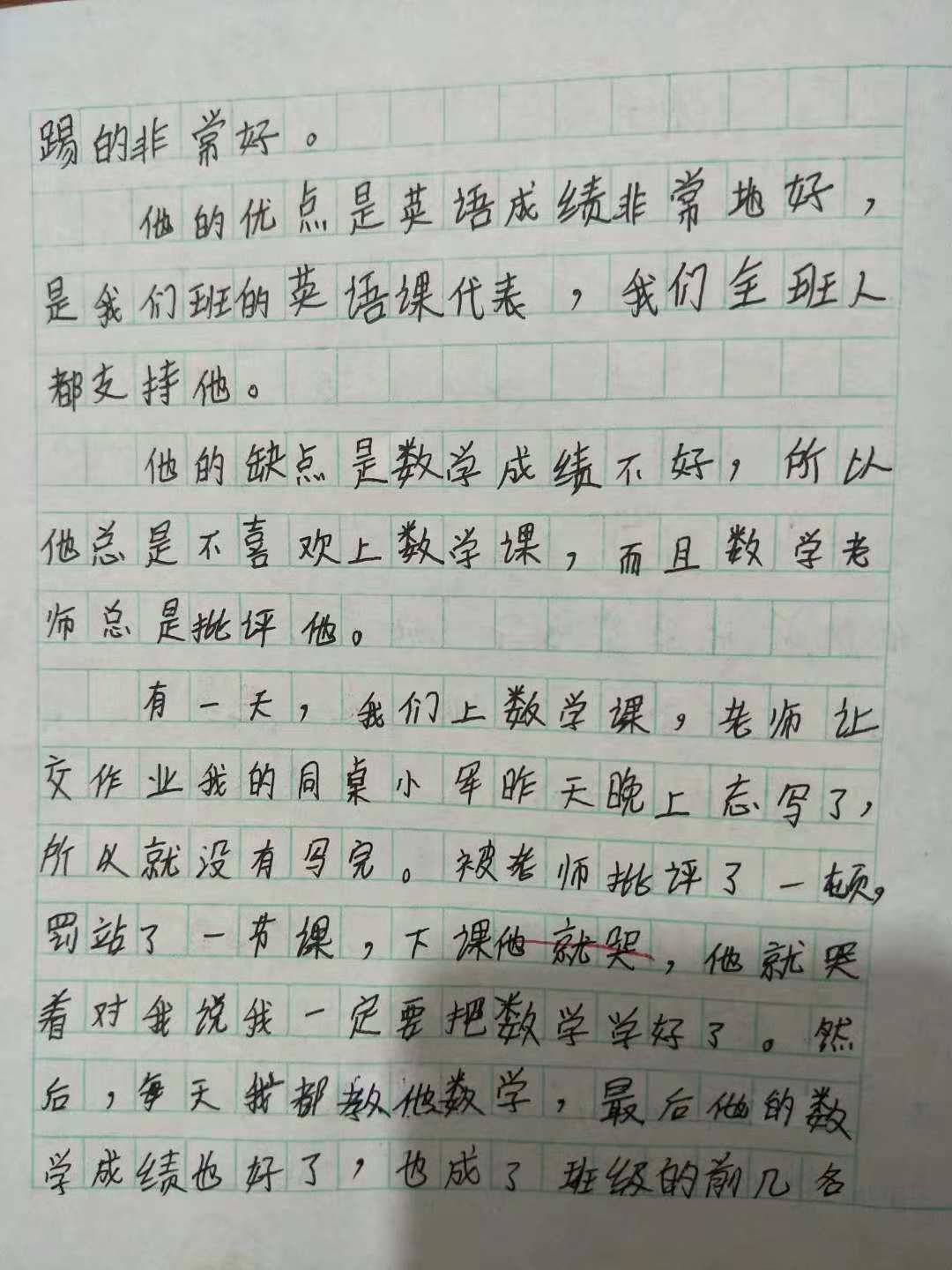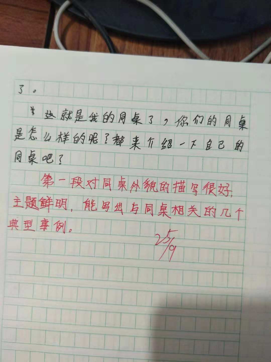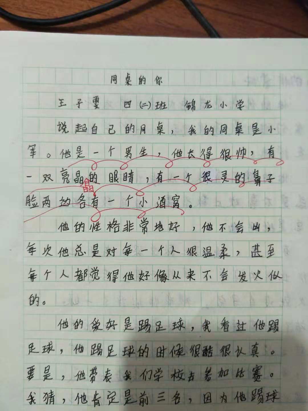 子雯,第一段对同桌的外貌描写非常细致清晰。你的主体鲜明,能用典型的事例来。来描写你的同桌,很棒!继续加油!