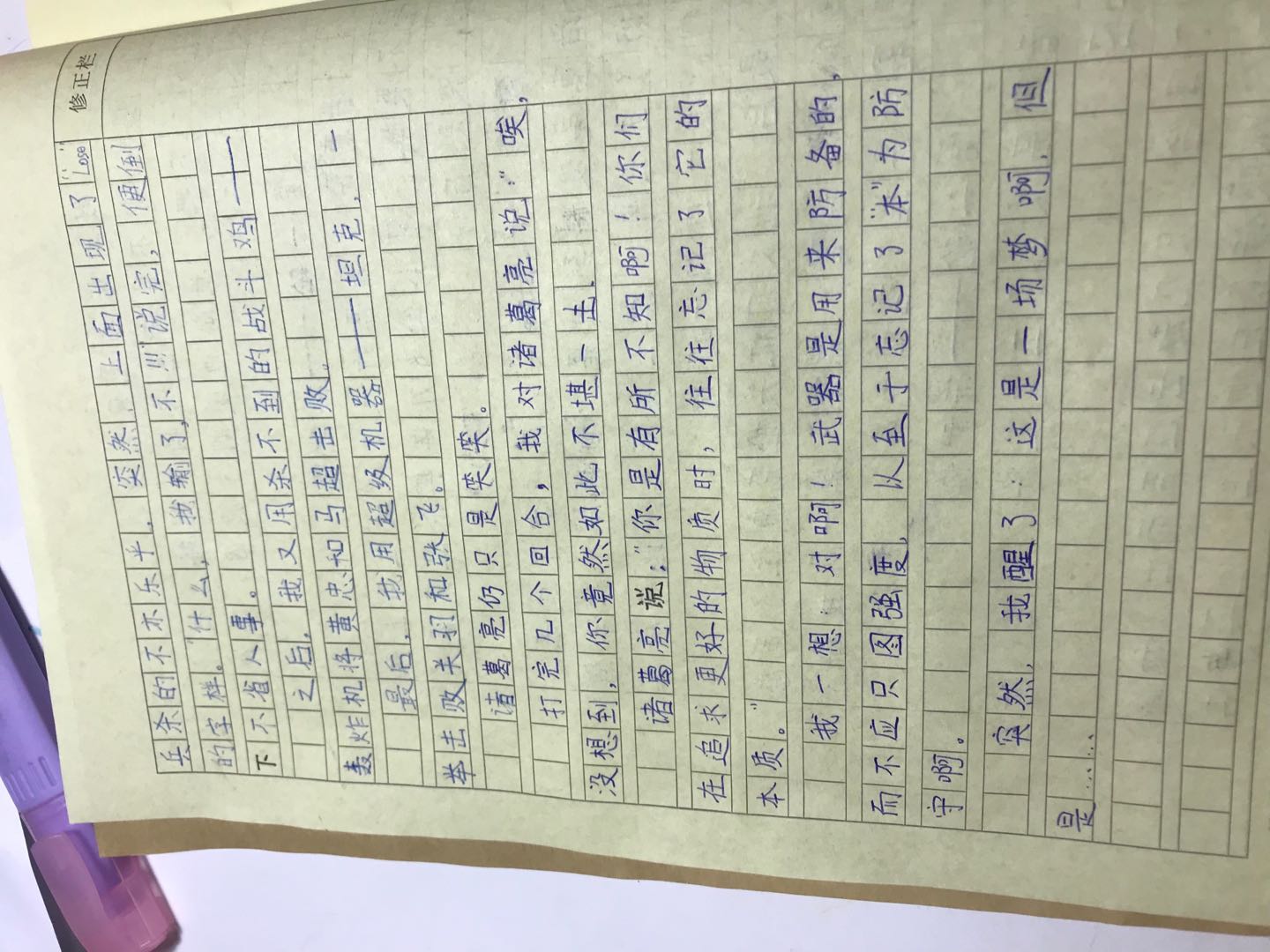 多么丰富的想象力啊!有了这样的想象力,才有了这个有趣的梦,语言流畅,用词贴切,书写工整干净,如果可以调整过来就不用歪着头看了!