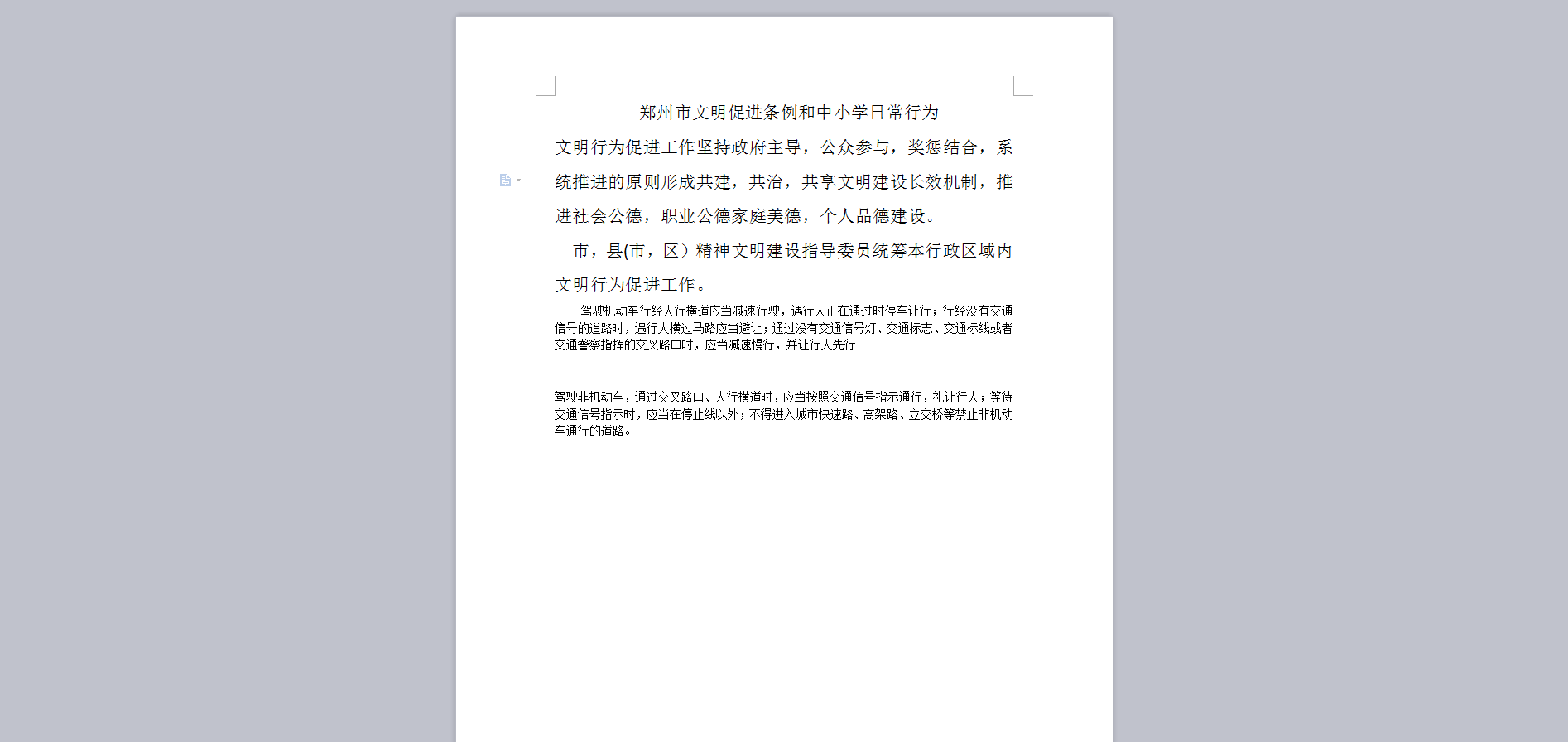 郑州市文明促进条例和中小学日常行为