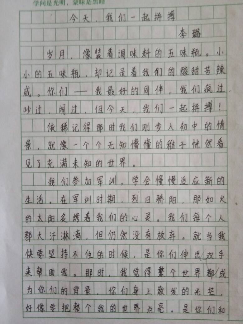今天,我们一起拼搏