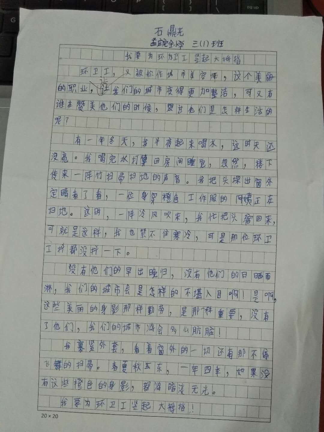 我要为环卫工人竖起大拇指