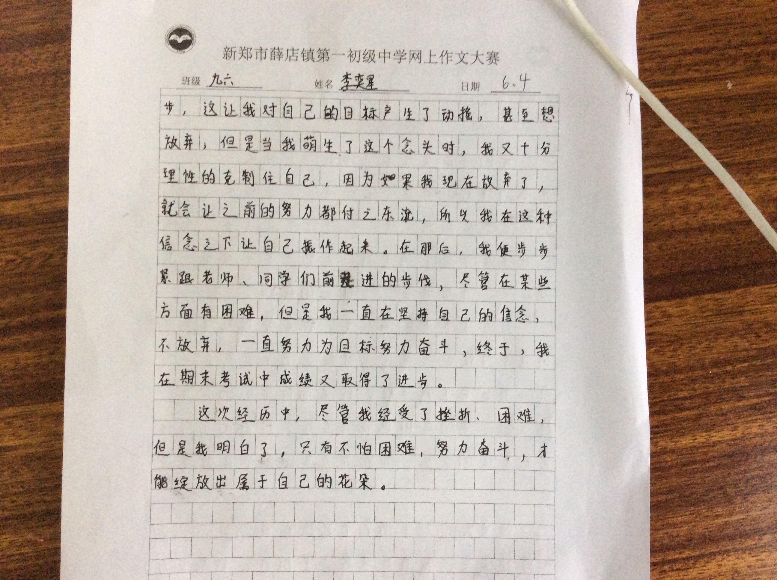 指导老师:肖铁峰 所属学校:新郑市薛店镇第一初级中学