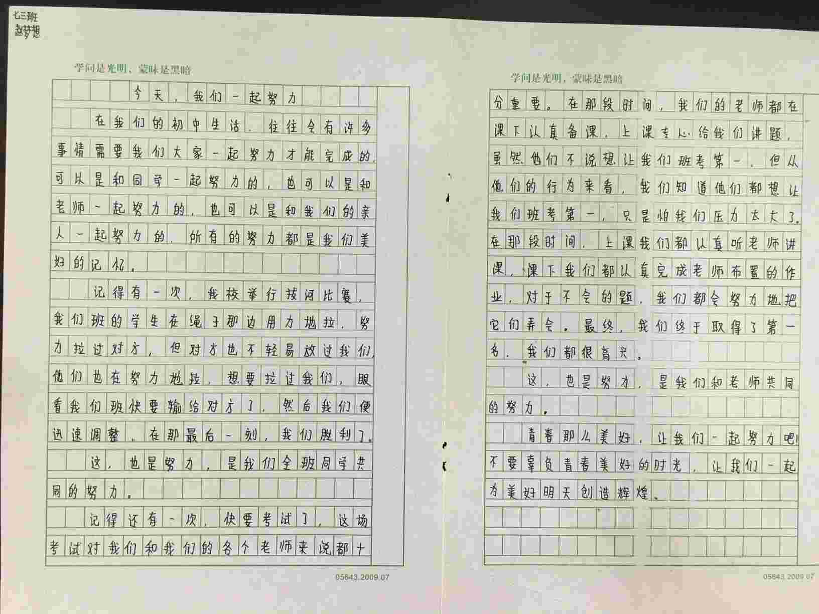 今天,我们一起努力