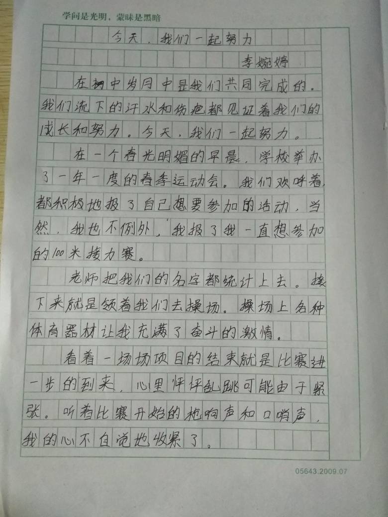 今天,我们一起努力