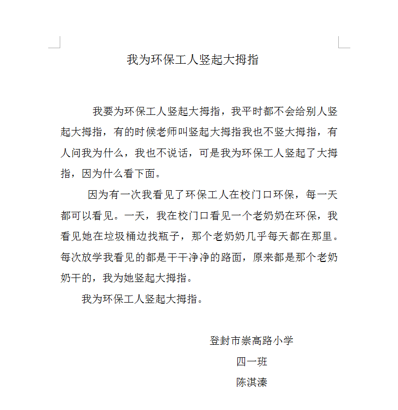 我为环保工人竖起大拇指