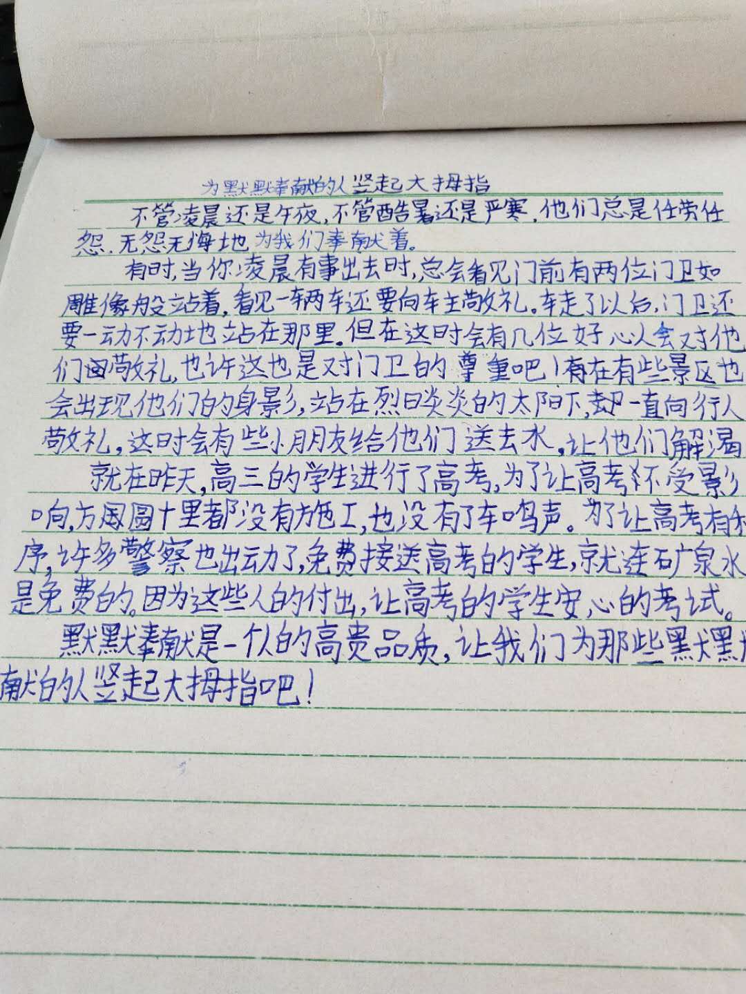 为默默奉献的人竖起大拇指