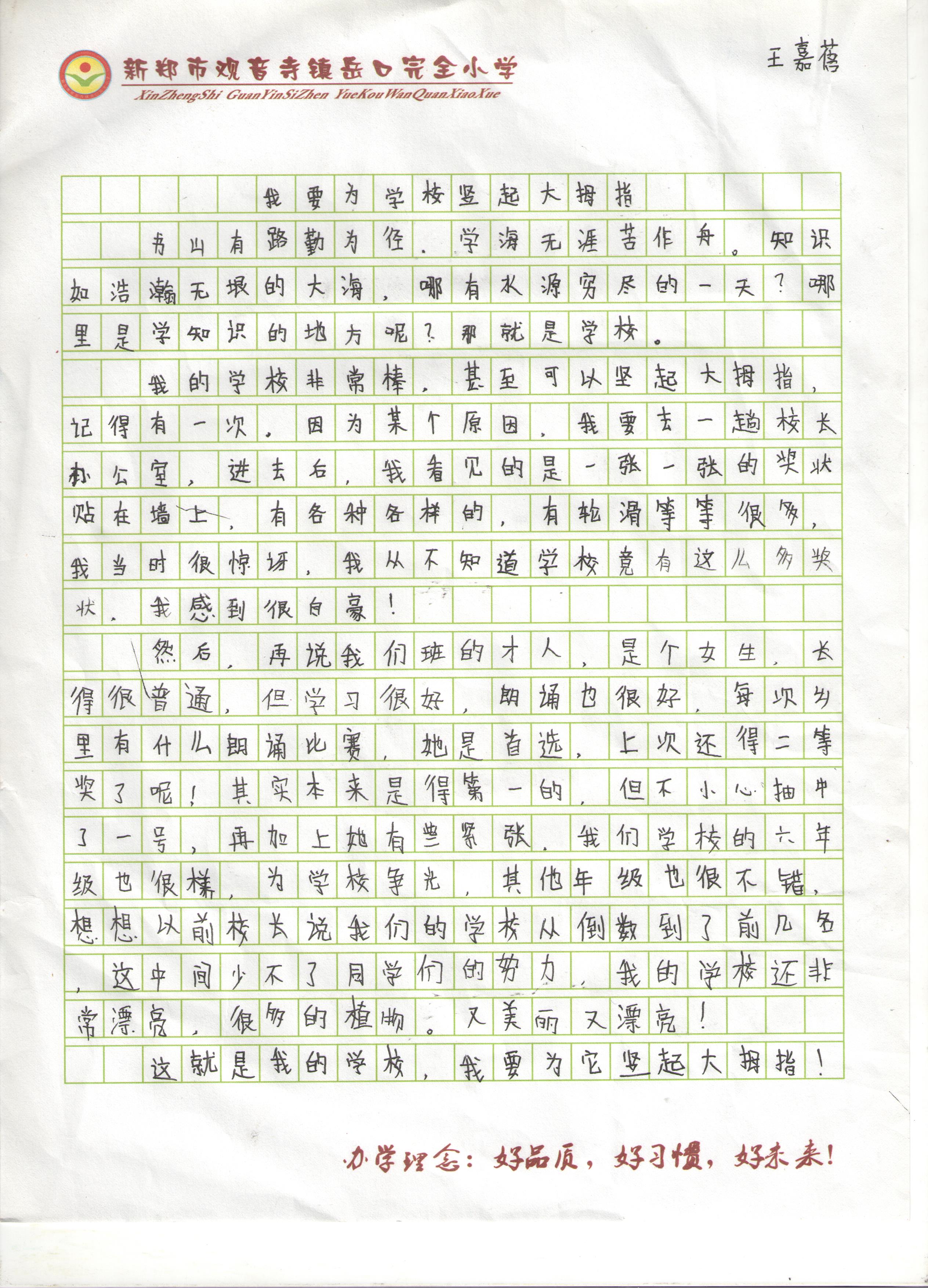 我要为学校竖起大拇指