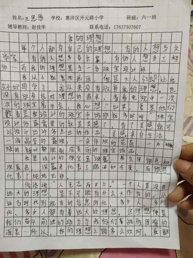 指导老师:赵佳华 所属学校:郑州市惠济区开元路小学