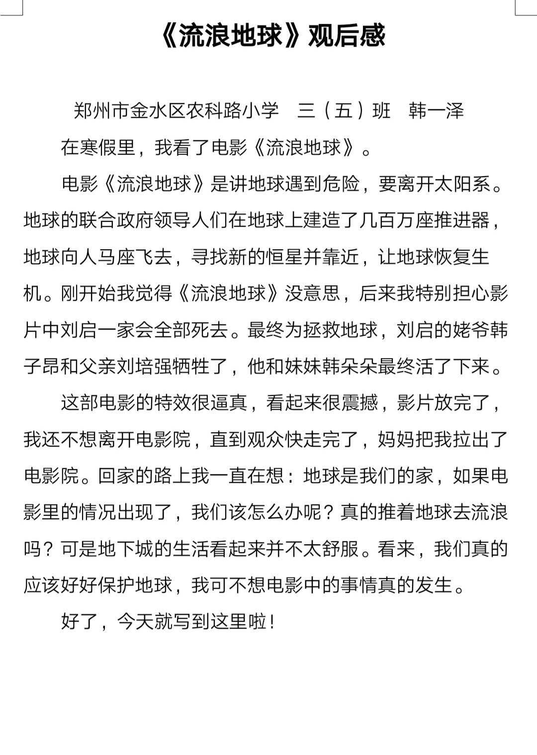 《流浪地球》观后感