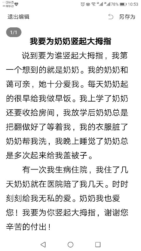 我为奶奶竖起大拇指