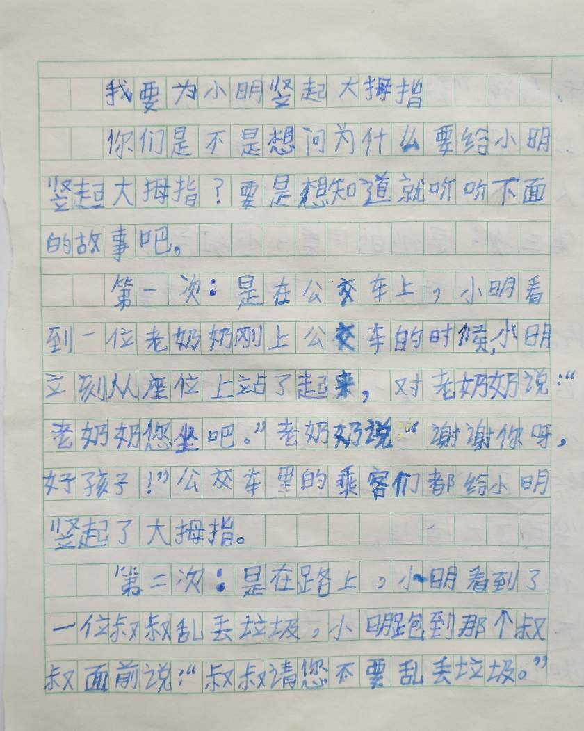 我要为小明竖起大拇指