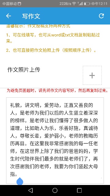 以下区域为指导老师点评区域,若您无法点评,请先核对此作文的指导老师名称与您的账户真实名称是否相同。