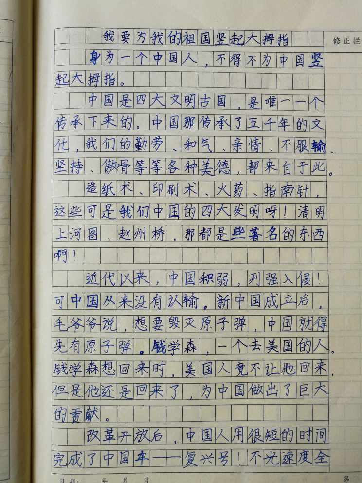 我要为我的祖国竖起大拇指