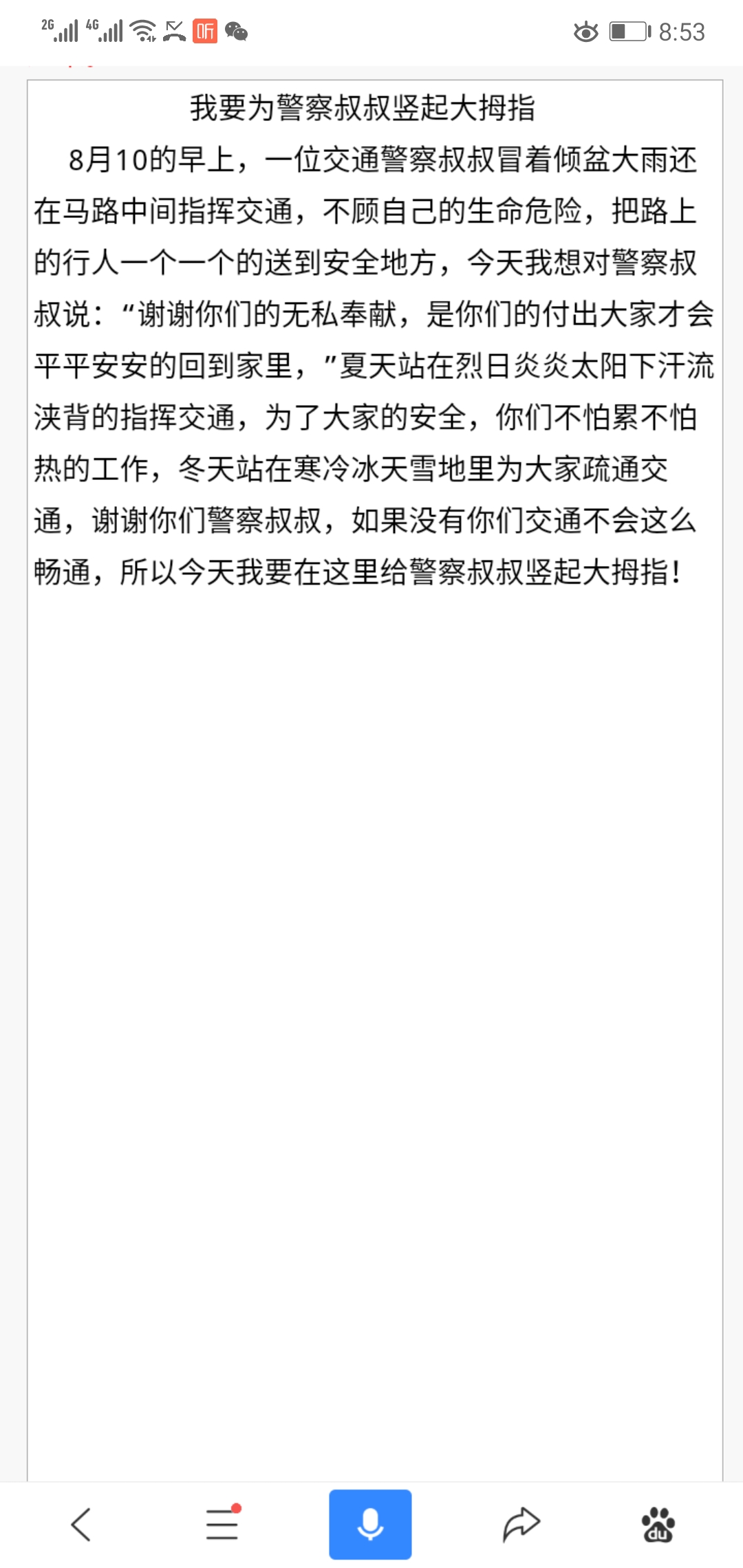 我为交通警察叔叔竖起大拇指