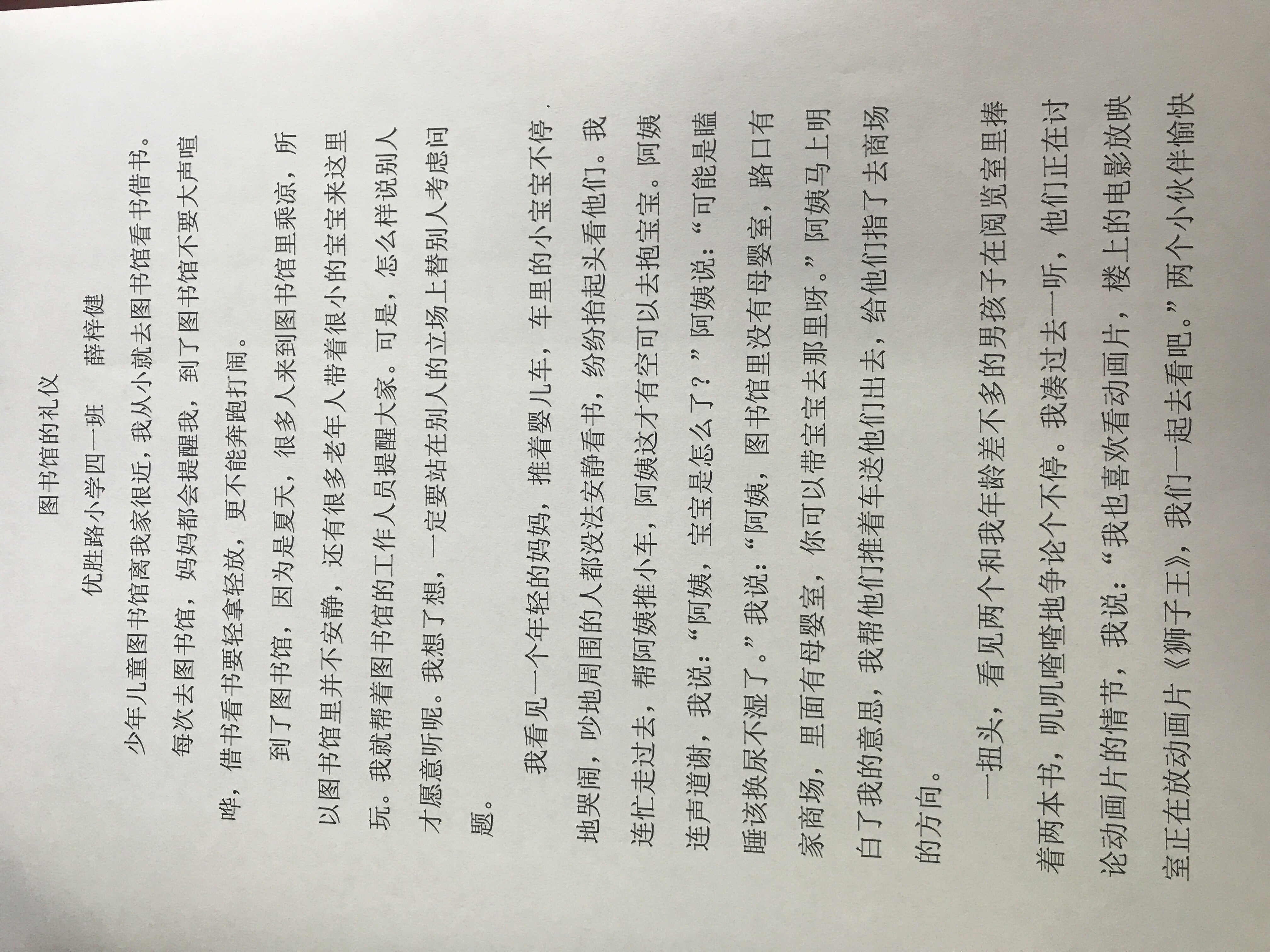 (2) 每次去图书馆,妈妈都会提醒我,到了图书馆不要大声喧哗,借书看书要轻拿轻放,更不能奔跑打闹。