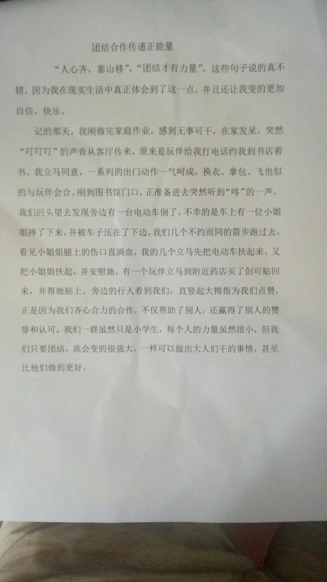 团结合作传递正能量