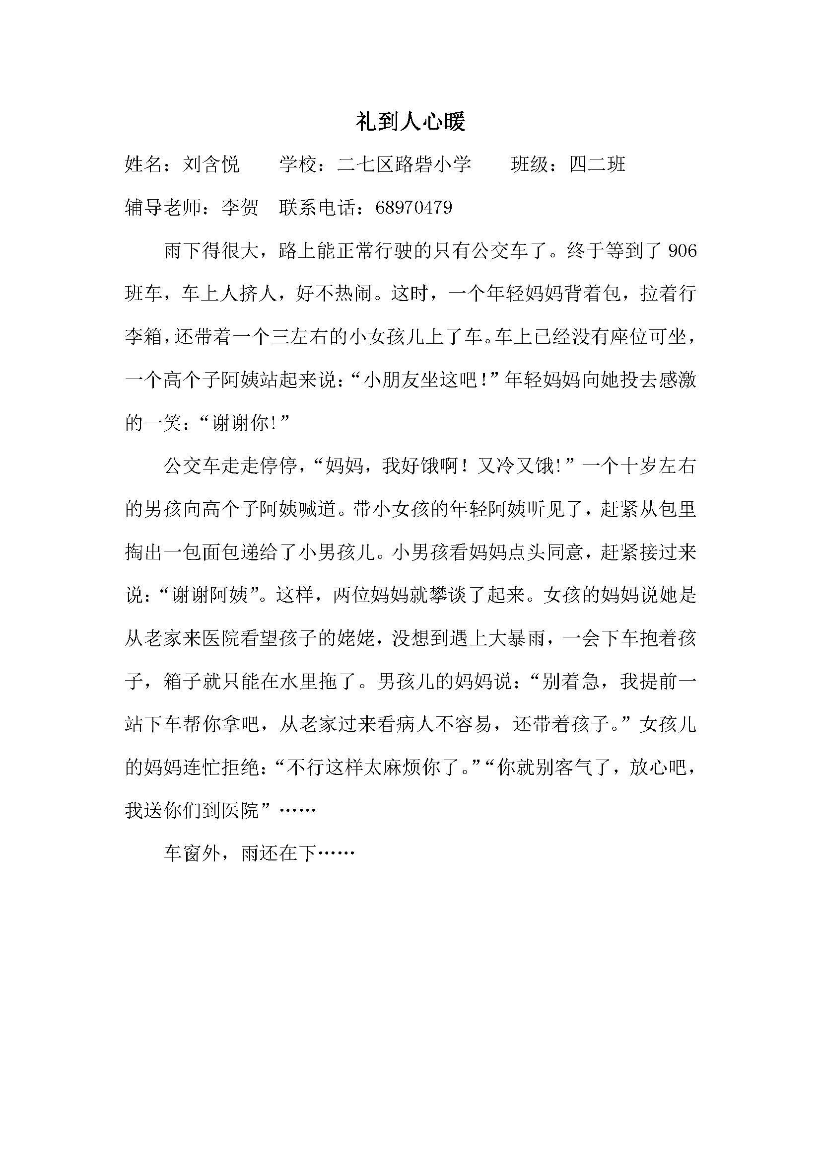 指导老师:李贺 所属学校:郑州市二七区路砦小学