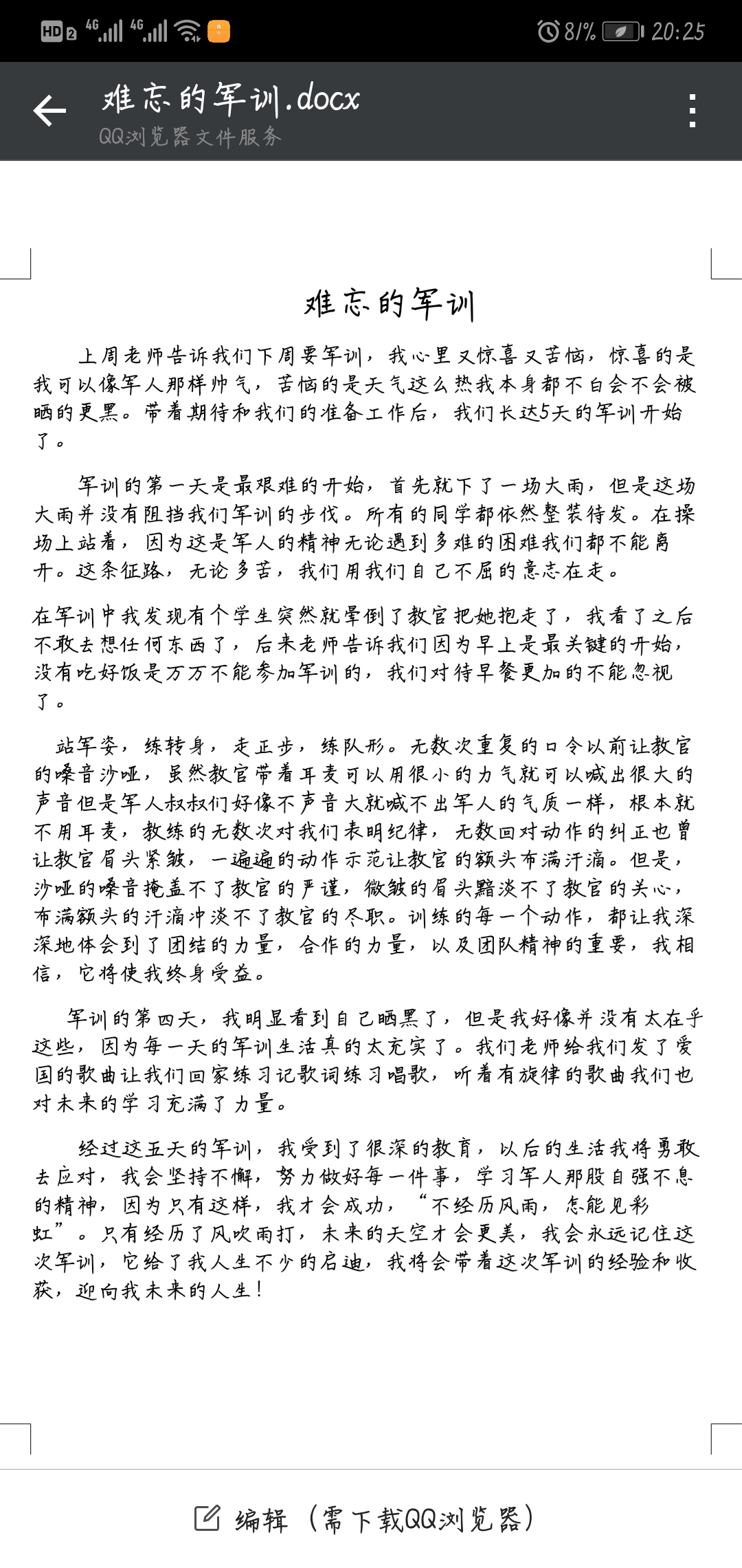 难忘的军训