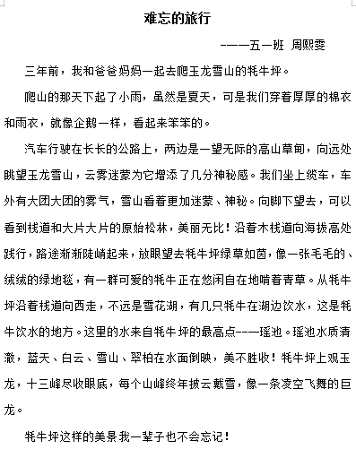 (1) 难忘的旅行 眉批:开篇即押题不错,但是语言最好再有些文采,还不算凤头。
