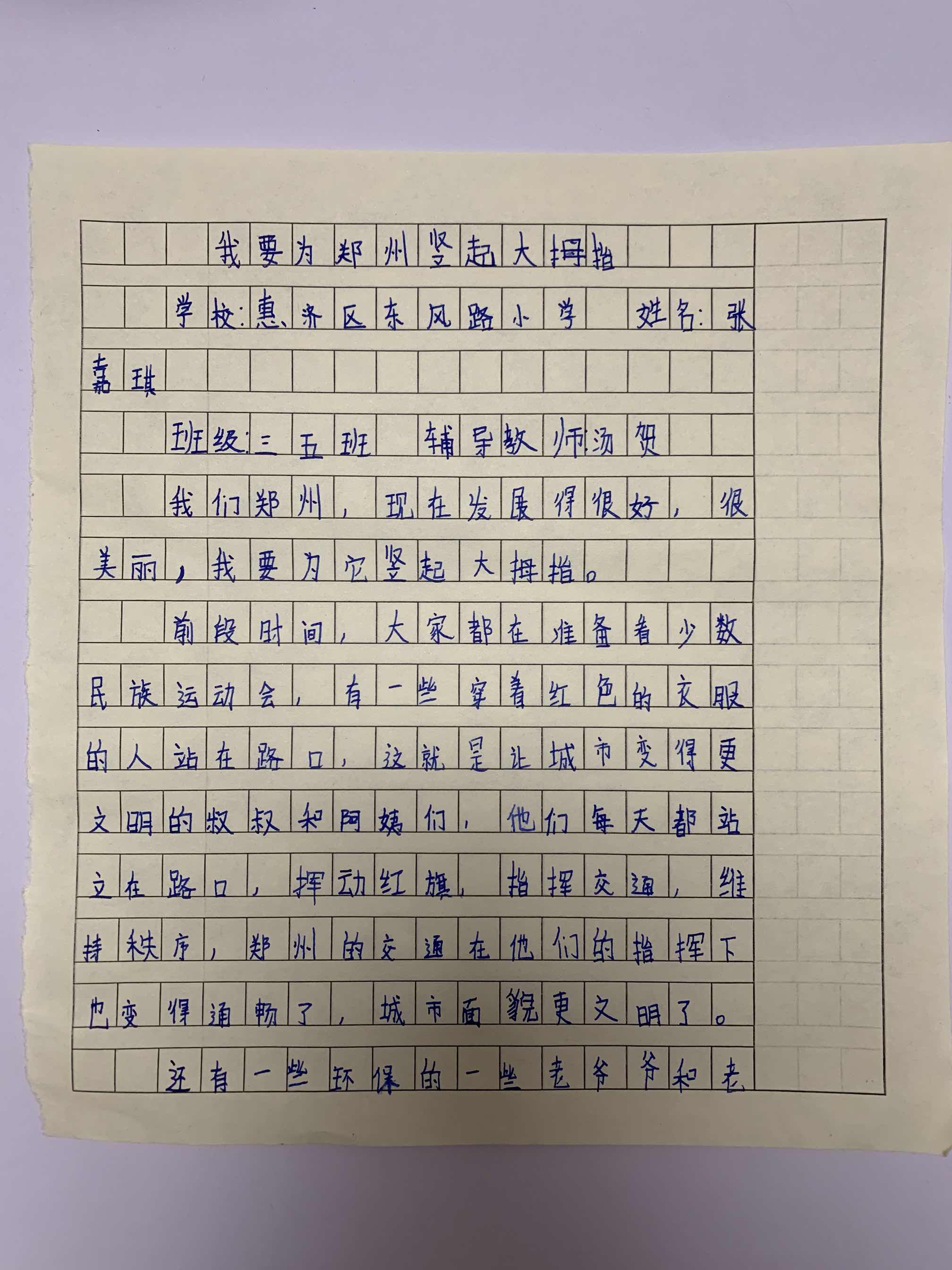 指导老师:汤贺 所属学校:郑州市惠济区东风路小学