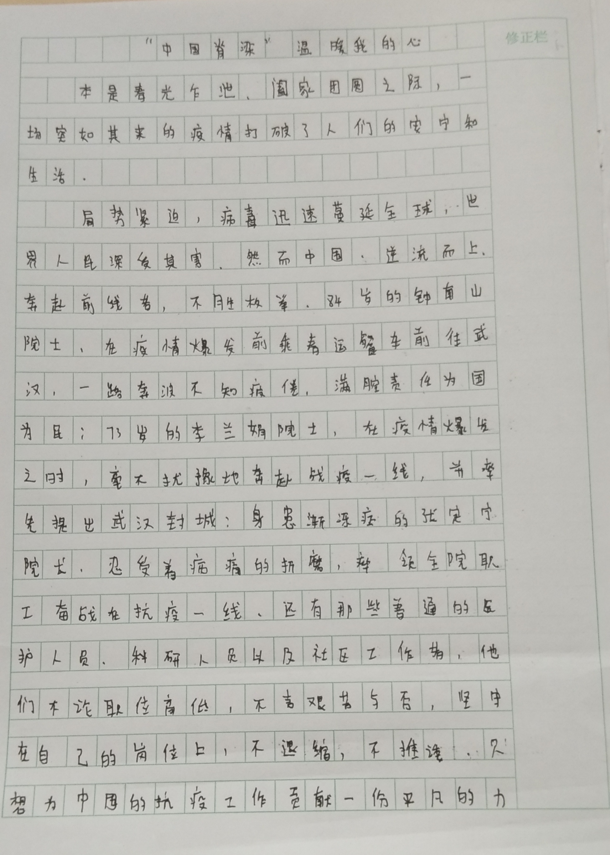 “中国脊梁”温暖我的心