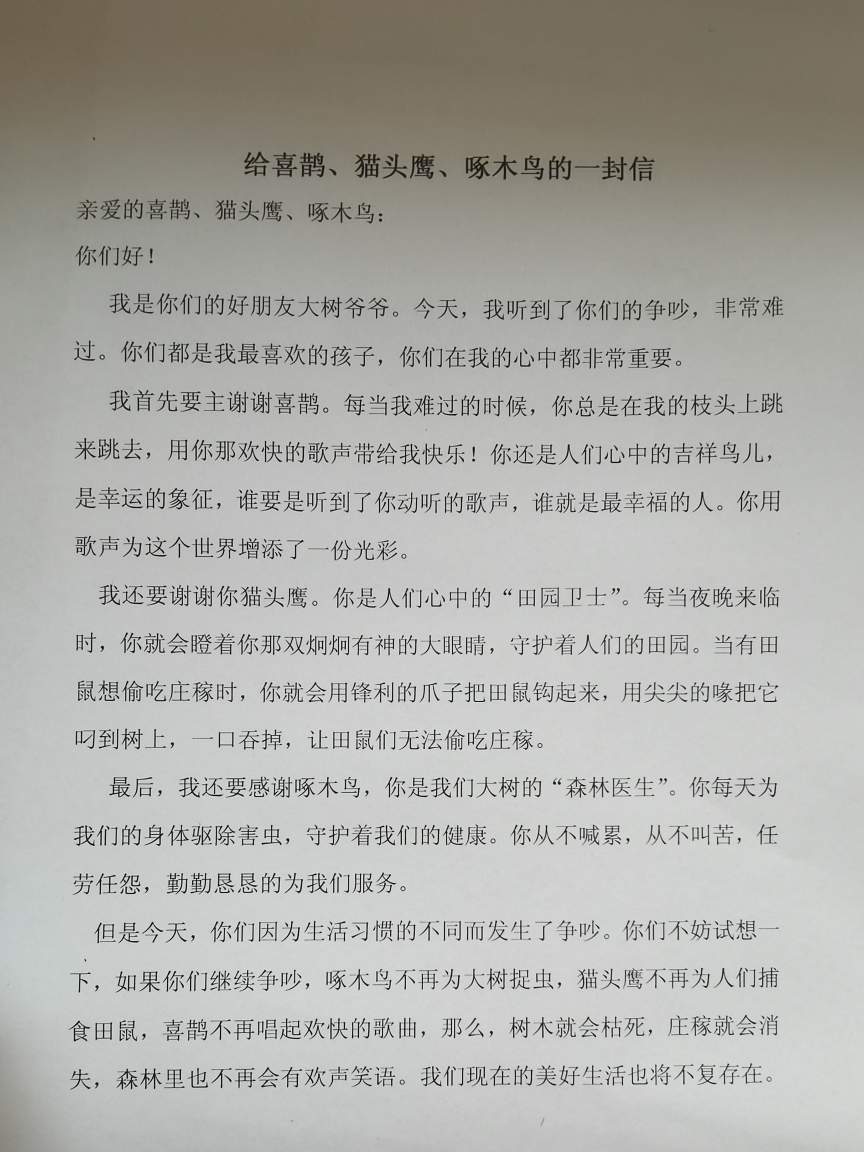 给喜鹊,猫头鹰,啄木鸟的一封信