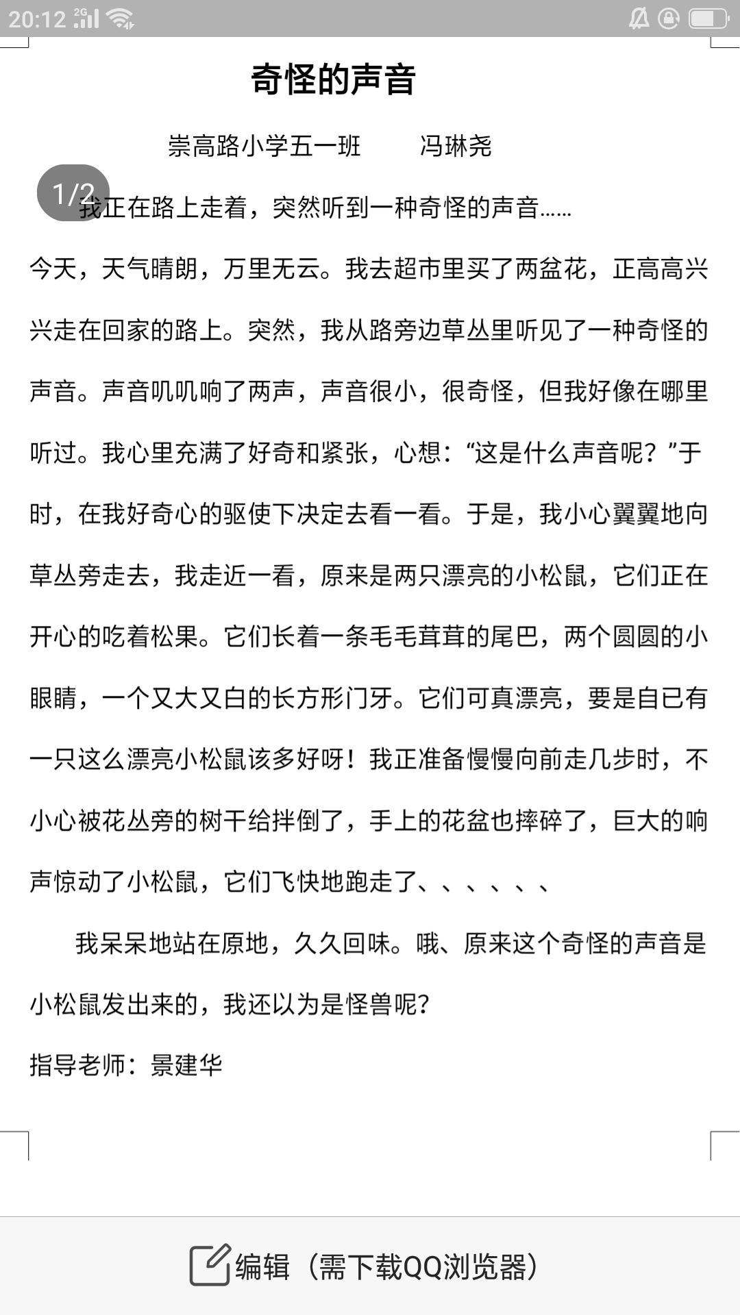 指导老师:景建华 所属学校:登封市崇高路小学
