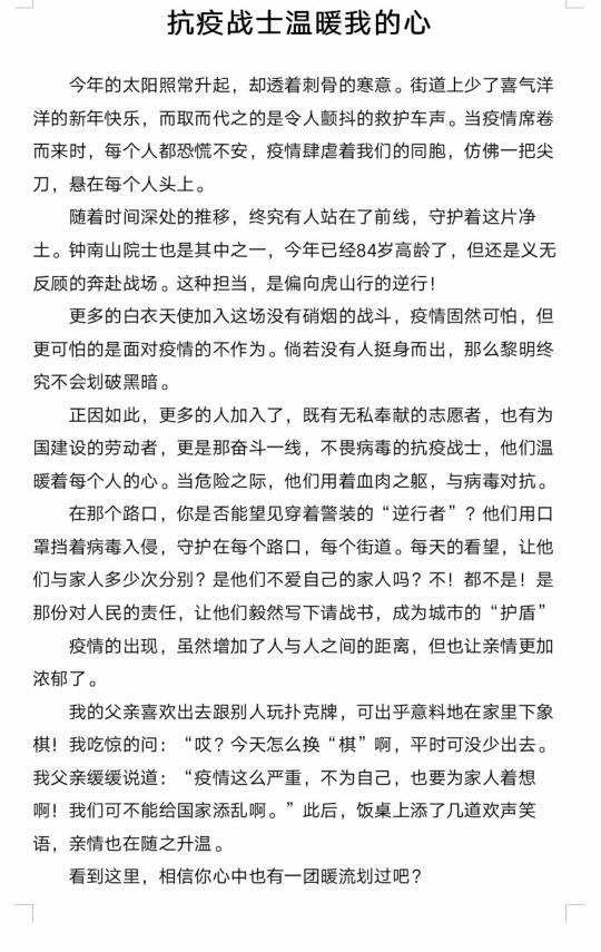 抗疫战士温暖我的心