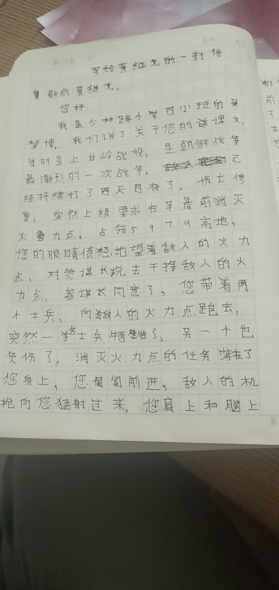 写给黄继光的一封信