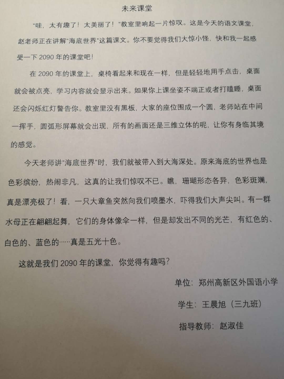 指导老师:赵淑佳 所属学校:高新技术产业开发区外国语小学
