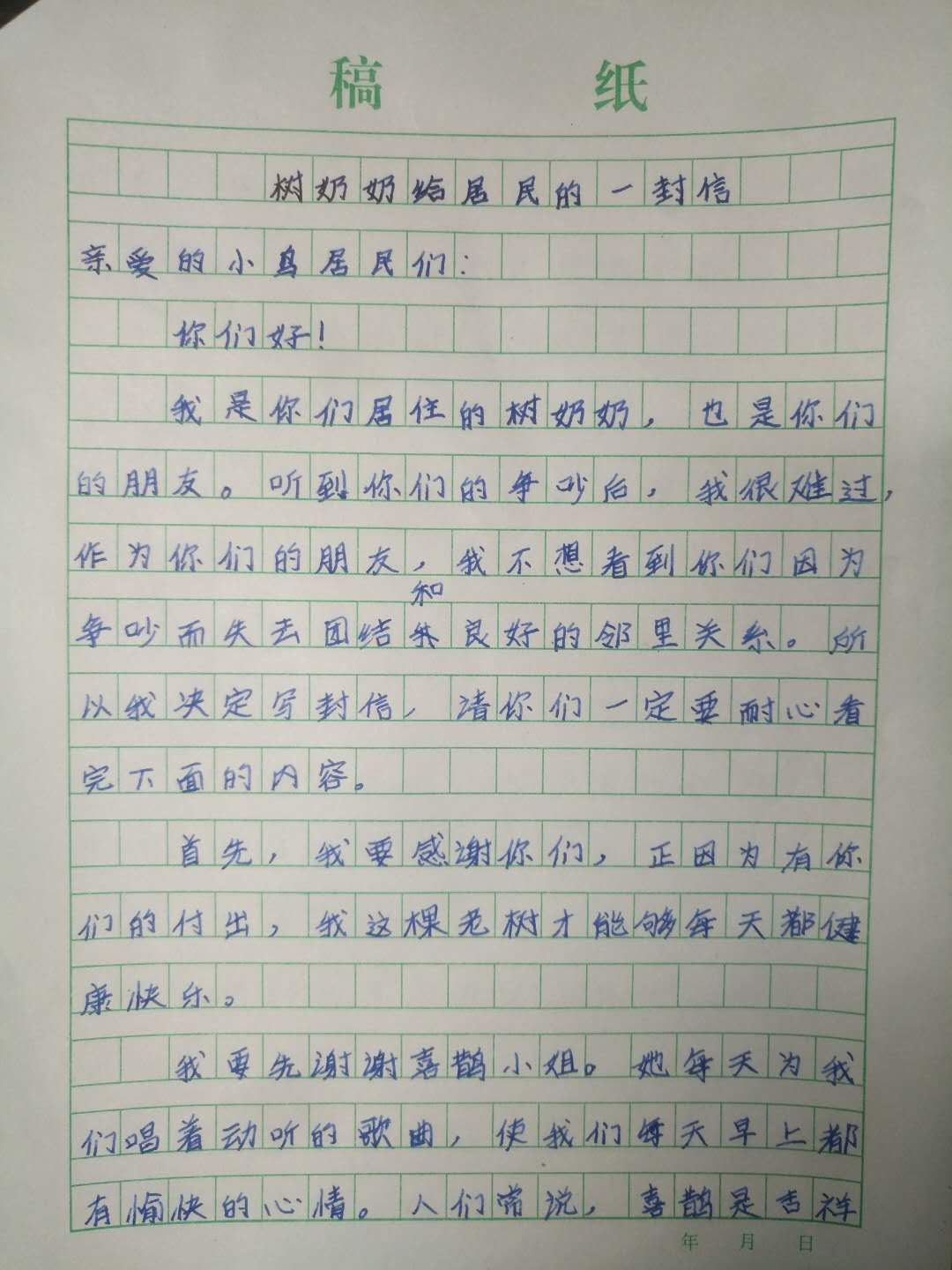 树奶奶给居民的一封信