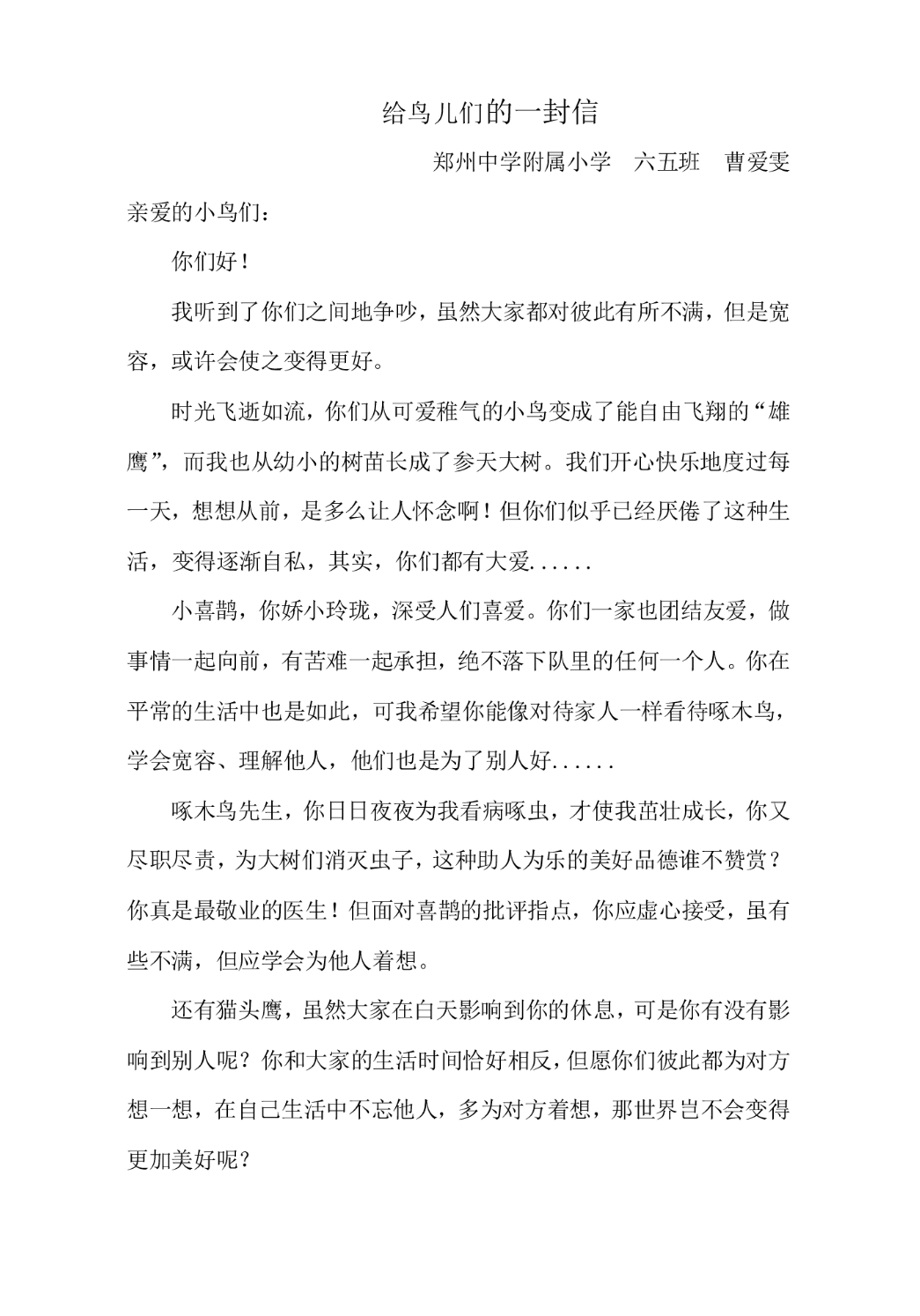 给鸟儿的一封信