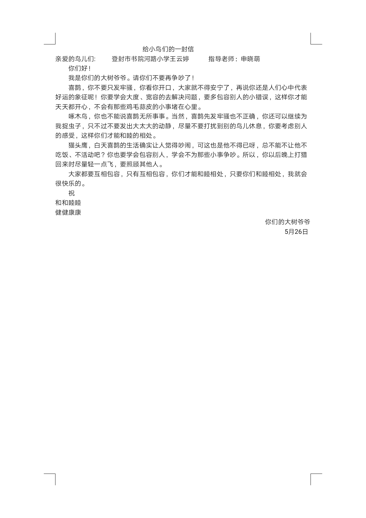 给小鸟的一封信